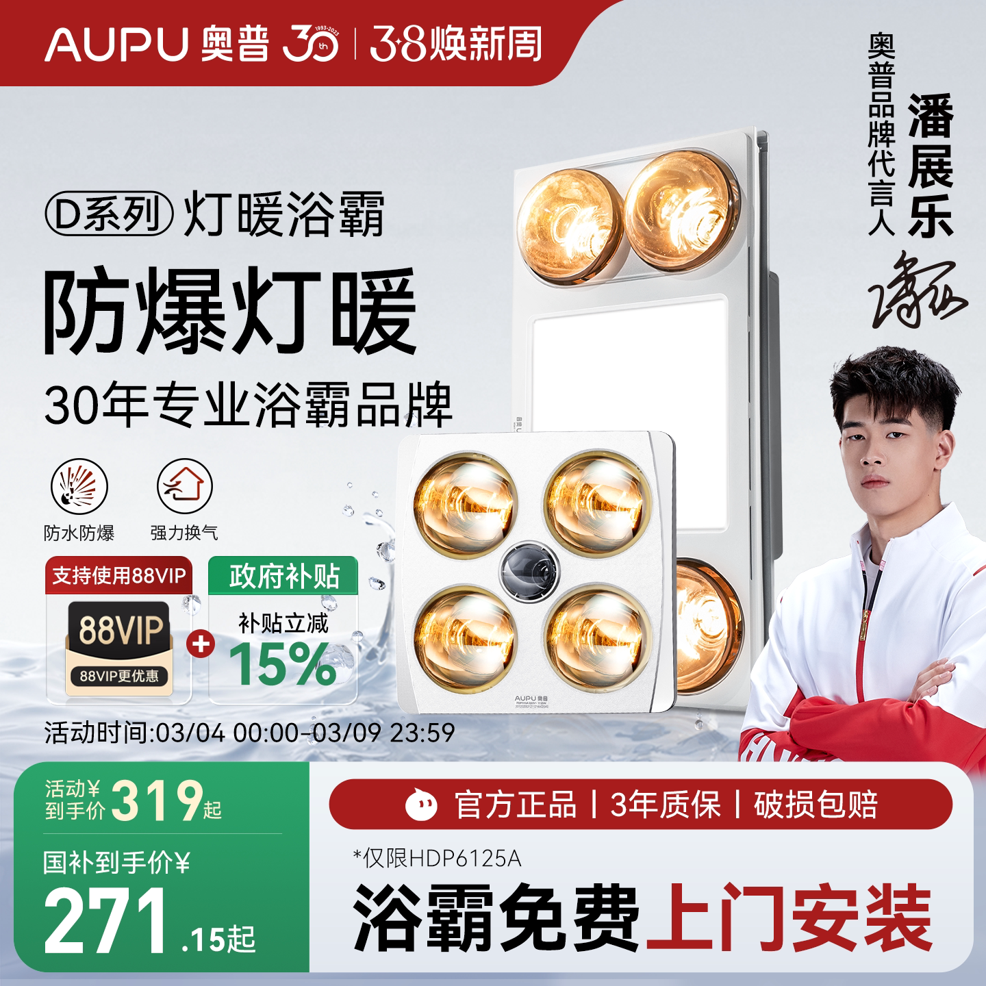 📚 补贴15%奥普灯暖浴霸安全防爆卫生间照明排气扇一体挂壁式浴霸灯