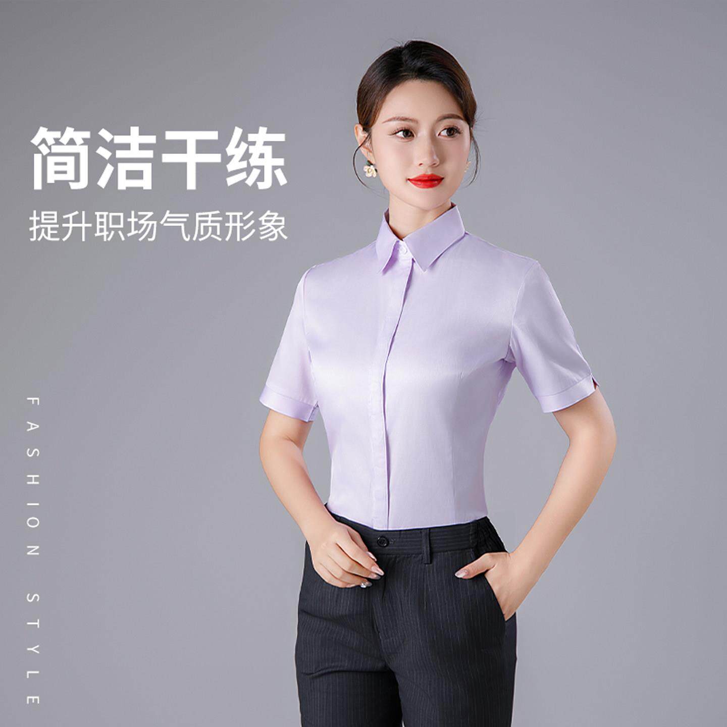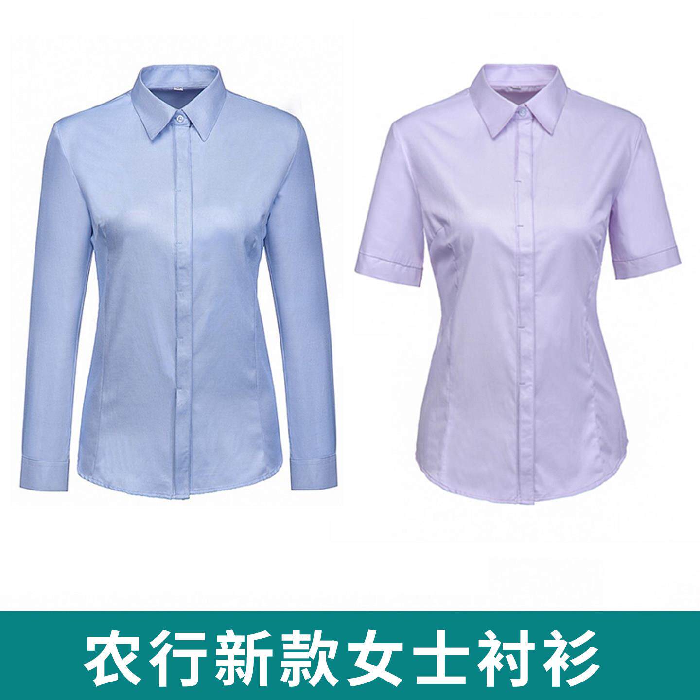 📚 夏季农行工作服女式蓝粉色长短袖衬衫工装农业银行行服衬衫上班服