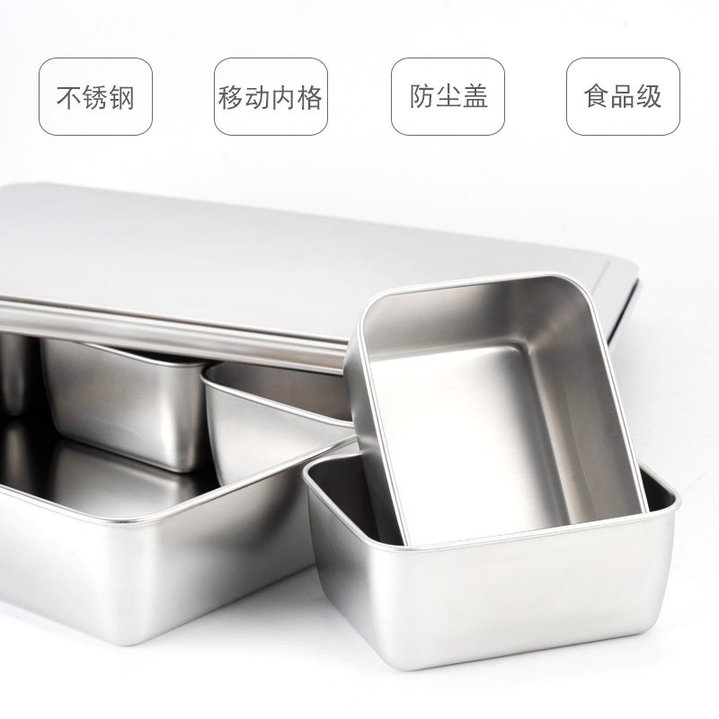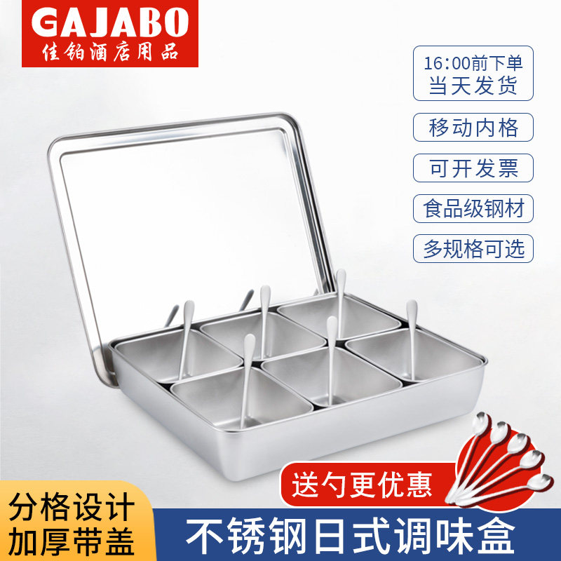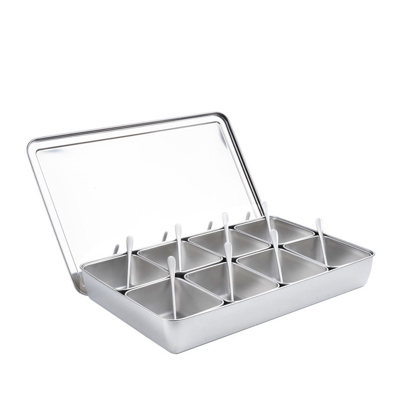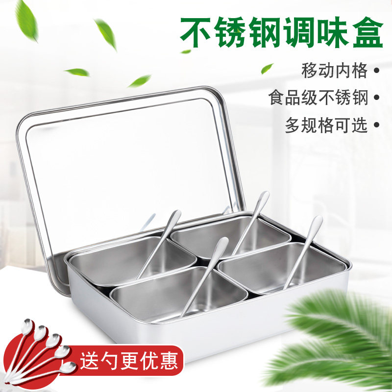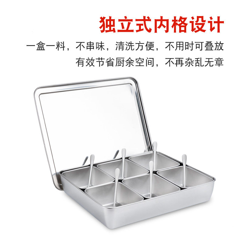 📚 调味盒不锈钢有盖多格方形调料罐日式味盒四格六格八格厨房调料盒
