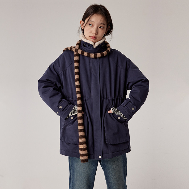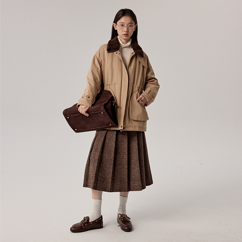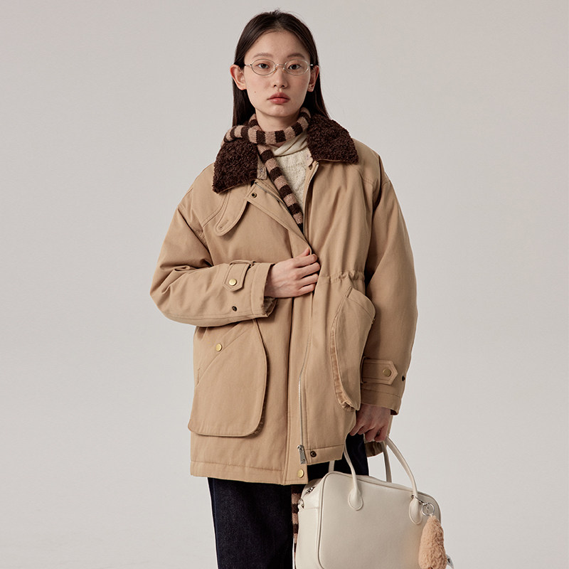 🍃冬日里的温暖守护者——OMONT蛋挞家 90白鸭绒复古巴恩风派克服冬宽松休闲毛领羽绒服