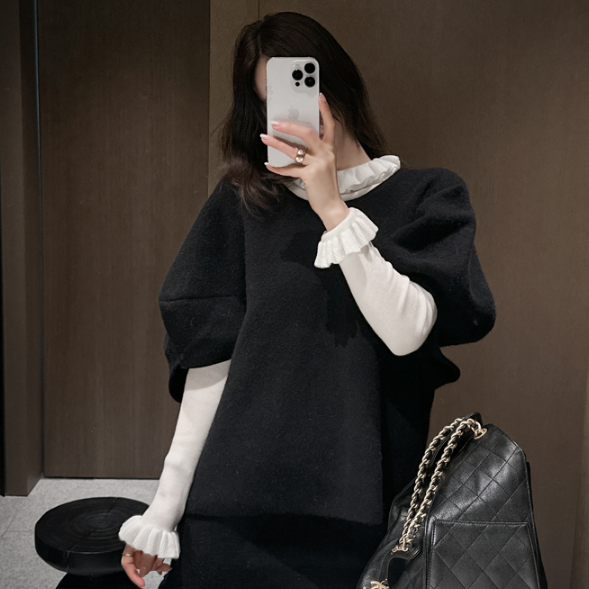 📚 partysu韩国正品代购韩版宽松短袖针织衫女圆领套头毛衣时尚上衣