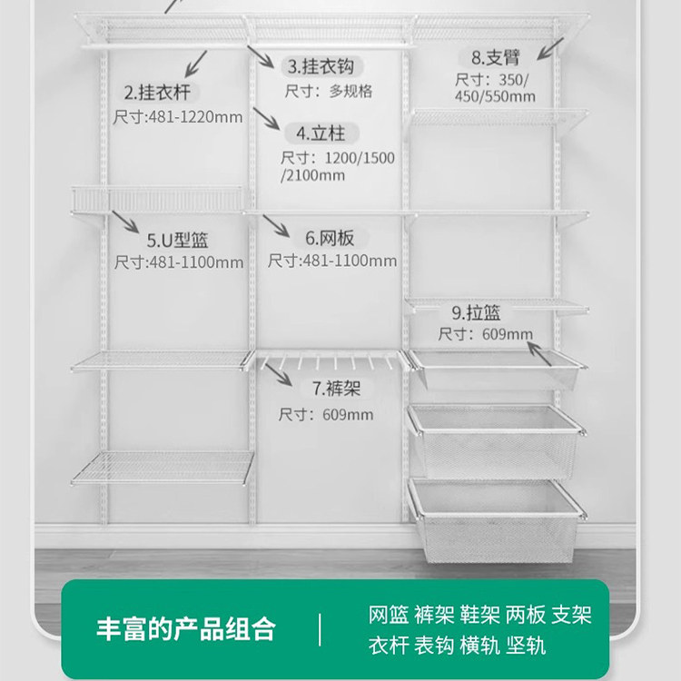 📚 金属衣柜框架步入式衣帽间架子组装砌墙衣柜钢架结构置物架挂衣架