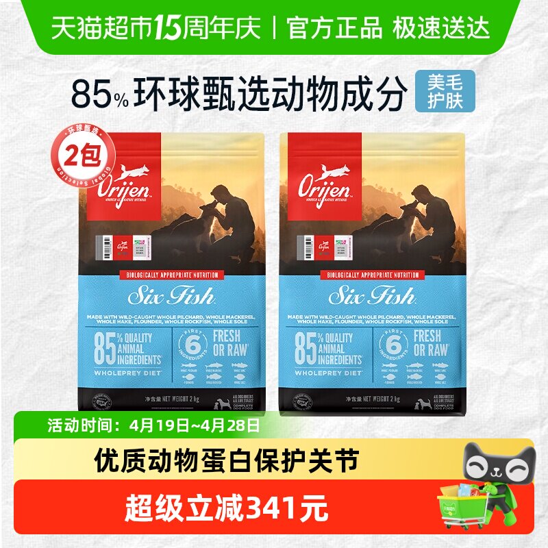 📚 Orijen原始猎食渴望狗粮六种鱼全价犬粮2kg*2最近效期26/10/15