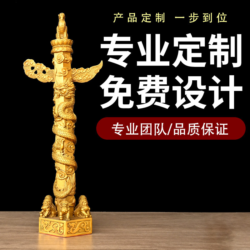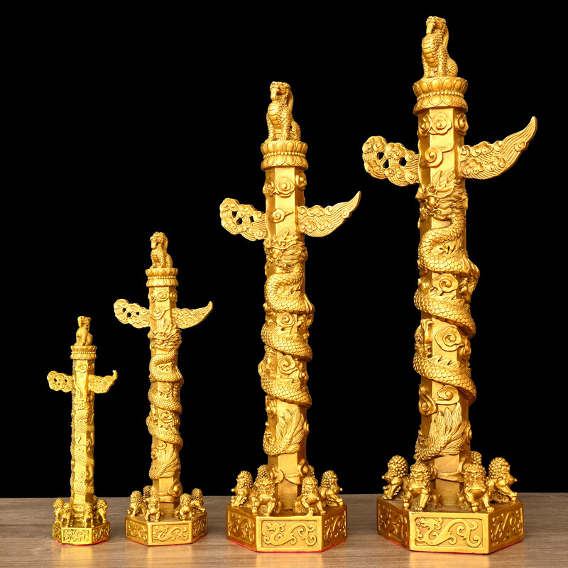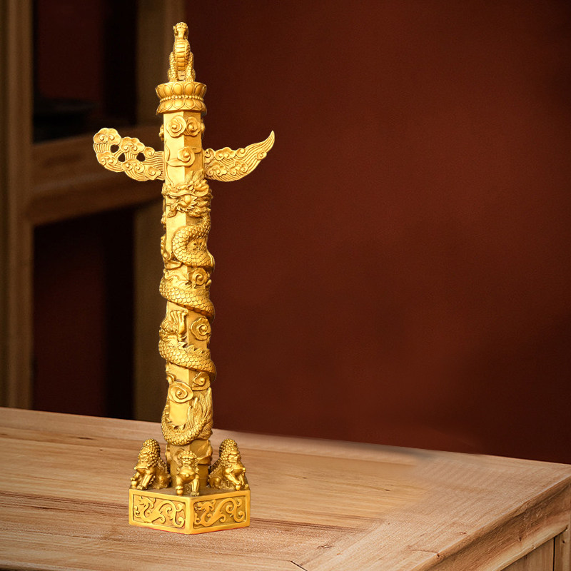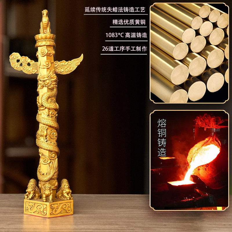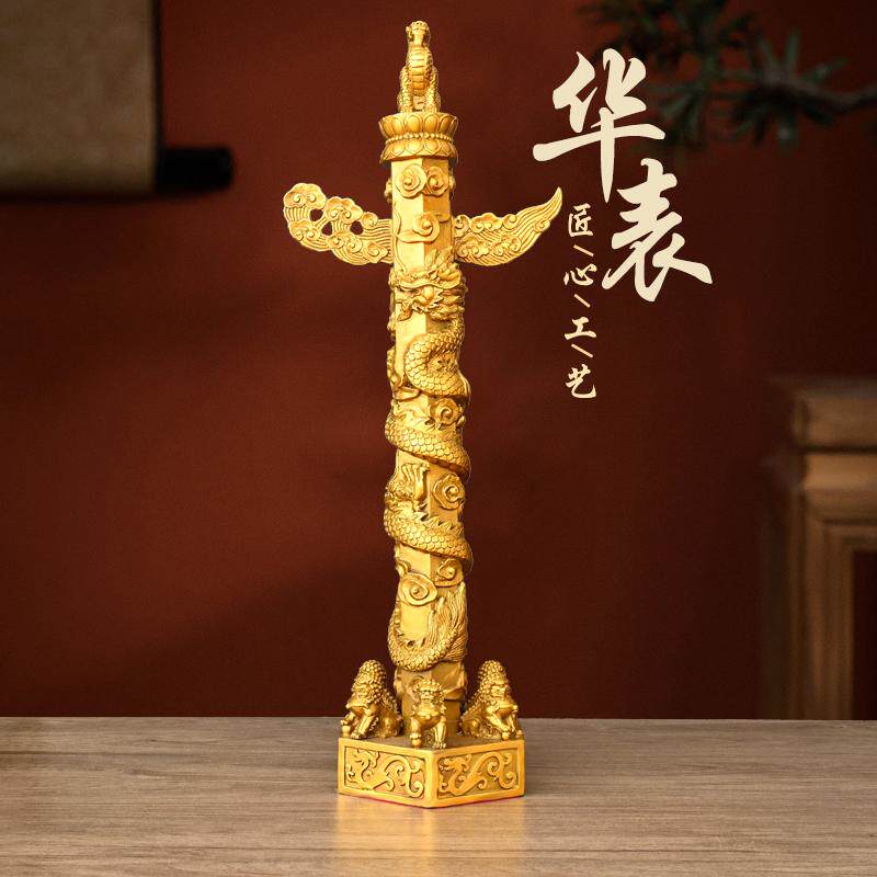 📚 纯黄铜华表摆件华表柱望天候流云盘龙柱家居客厅办公室装饰工艺品