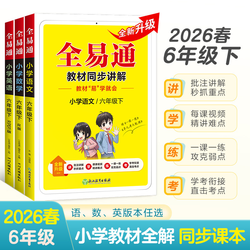 📚 2026春全易通小学教材全解六年级语文数学英语上 下册同步讲解练习6年级语数英语教材教辅书知识点全解人教版等教辅书老师备课家长
