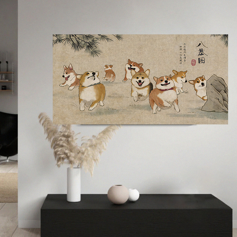 📚 八基图旺财山水画 沙发背景墙装饰画壁画新中式R餐厅饭厅厨房挂画