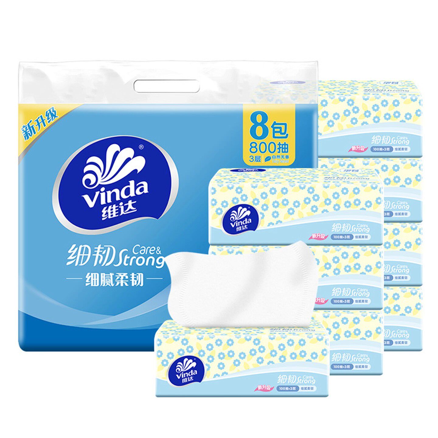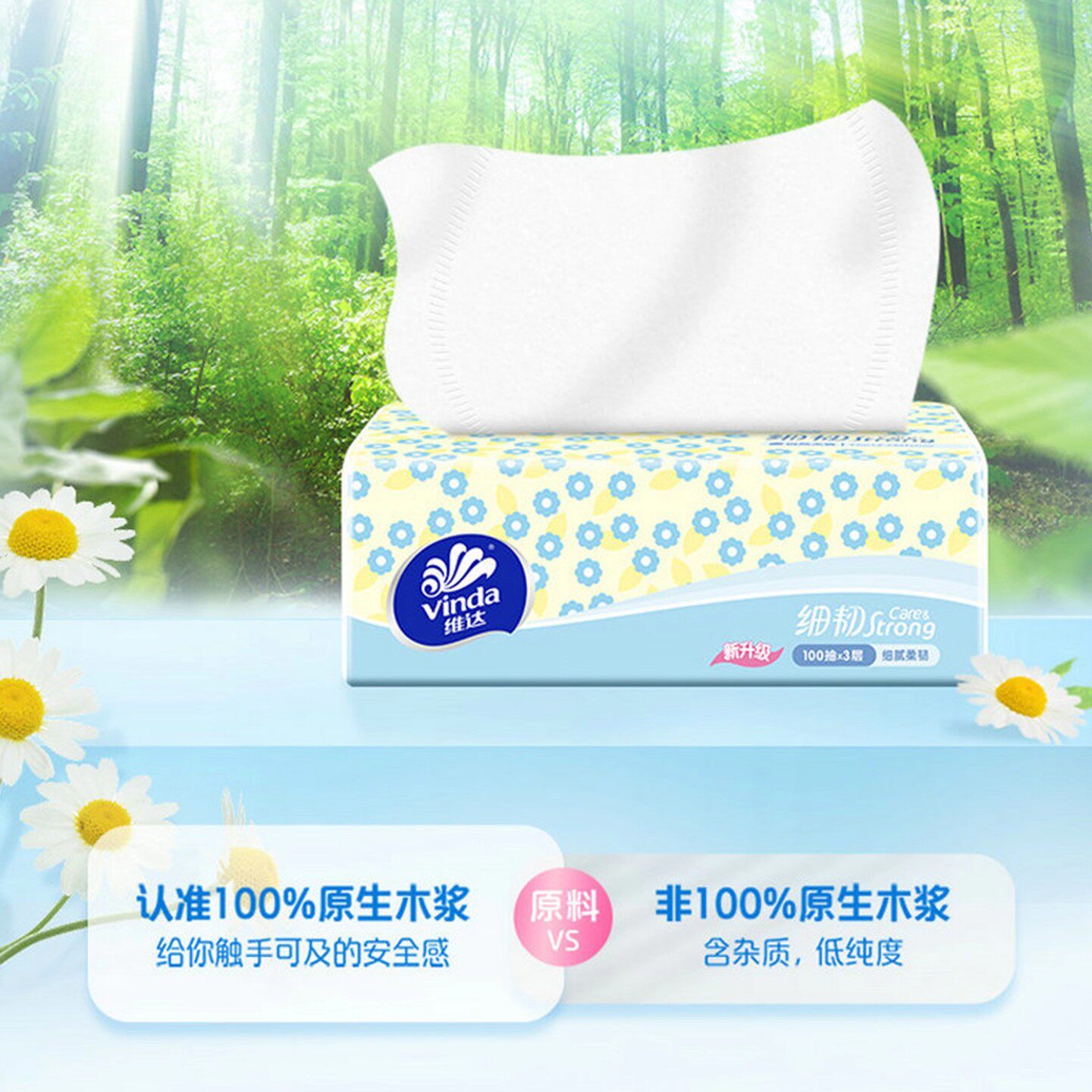 📚 维达细韧抽纸3层100抽家用餐巾纸湿水不易破不掉屑面巾纸实惠装