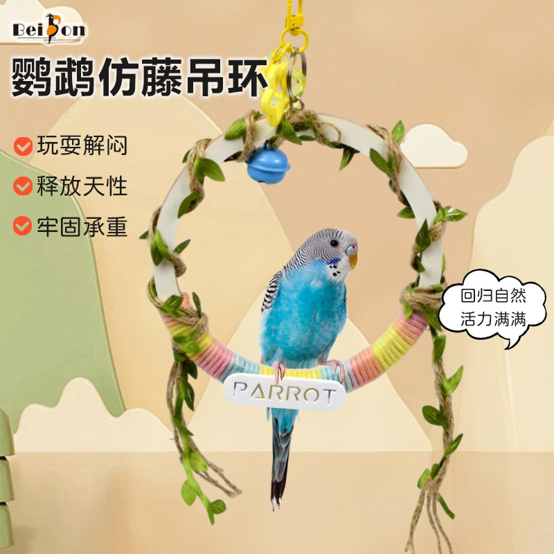 📚 贝松鹦鹉秋千玩具玄凤牡丹虎皮啃咬用品解闷笼内装饰鸟攀爬木站杆