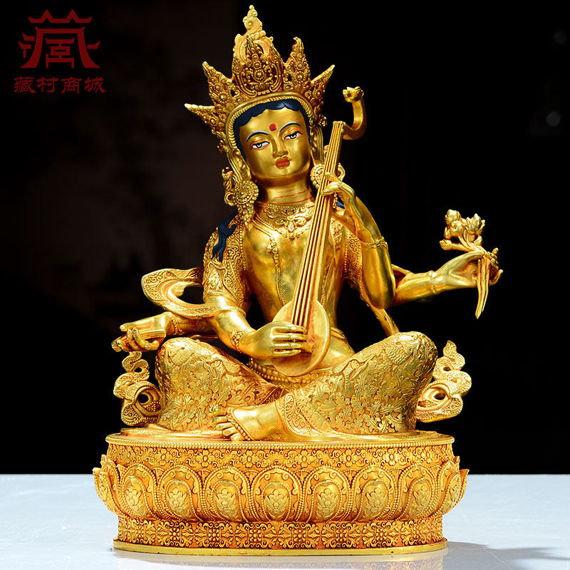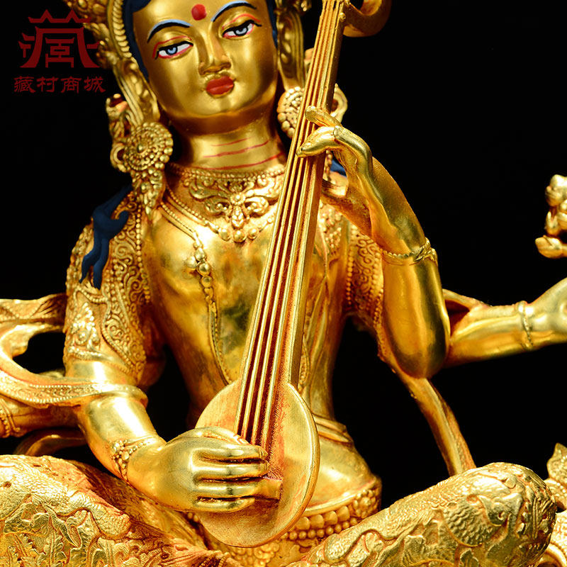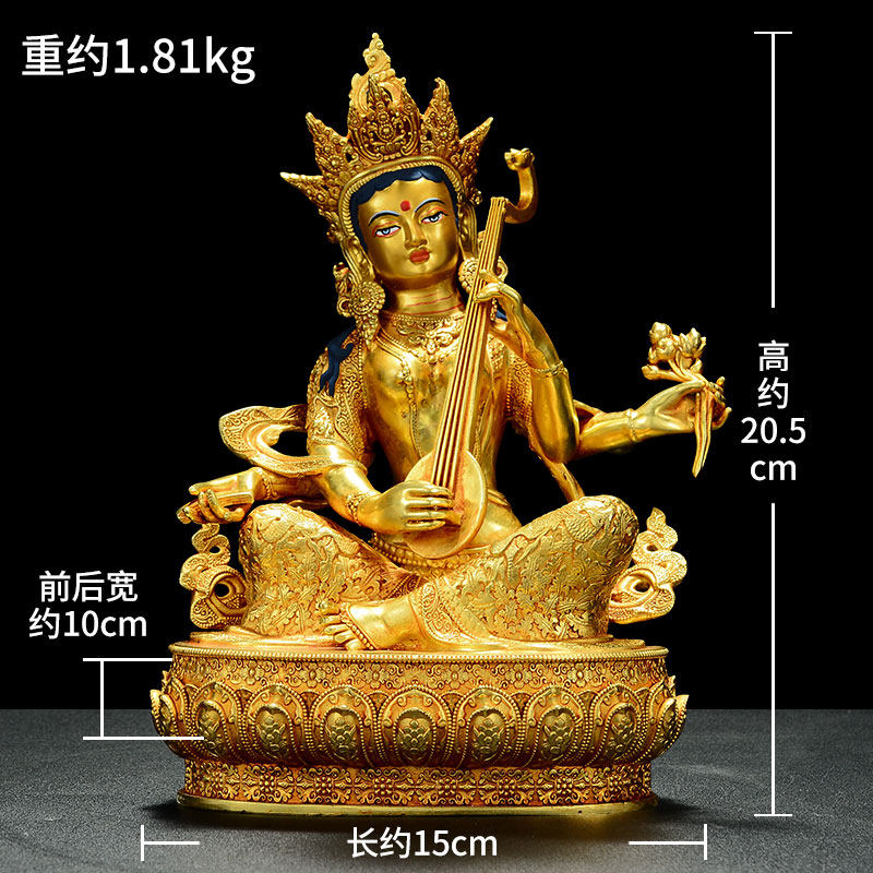 📚 全鎏金《妙音天女》室内家用精工铜雕《辩才天女》铜像摆件