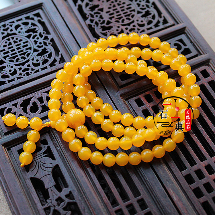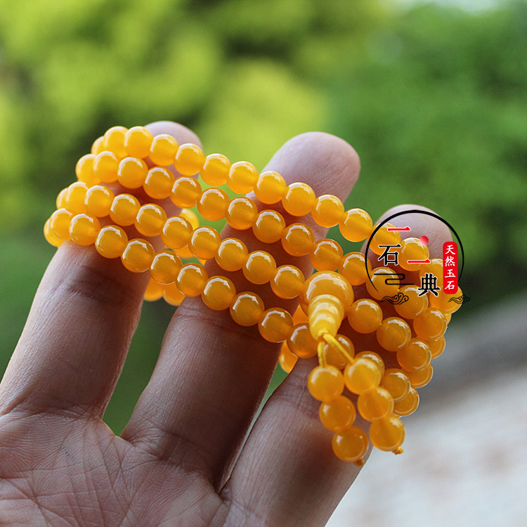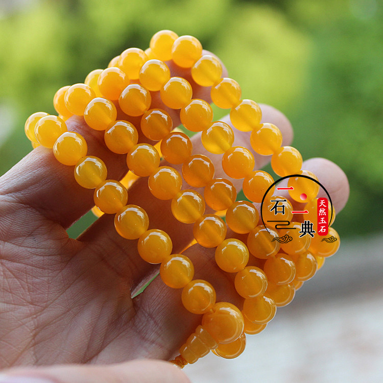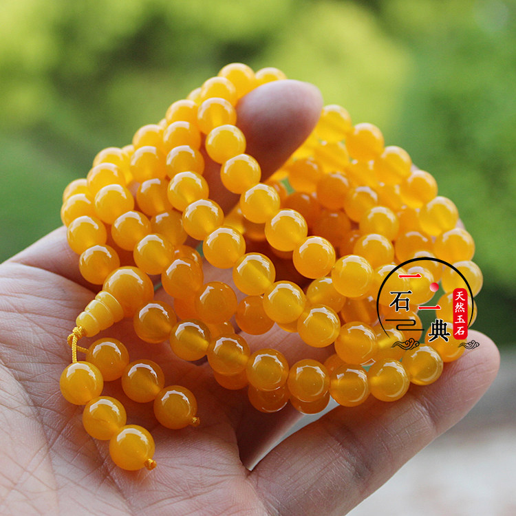 📚 天然玉石手链黄玛瑙玉髓108颗多圈层手串佛珠项链民族风玉手饰