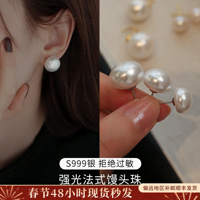 📚 饰悟银饰扁圆馒头珍珠耳钉女高级感纯银2026新款爆款珍珠耳环耳饰