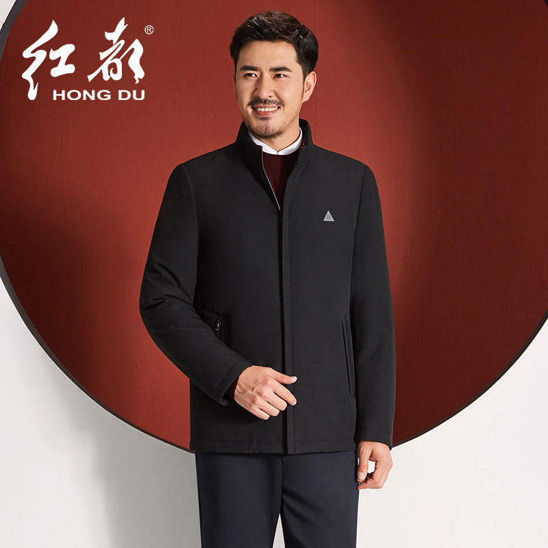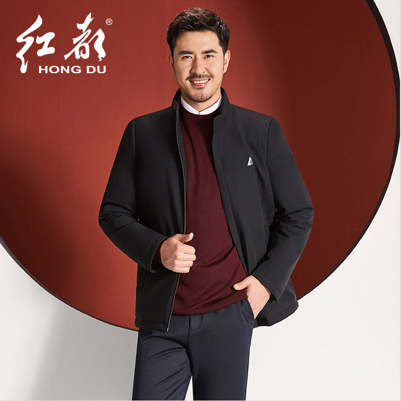 📚 红都商务休闲鸭绒服男装短款保暖纯色立领秋冬季新品外套羽绒服