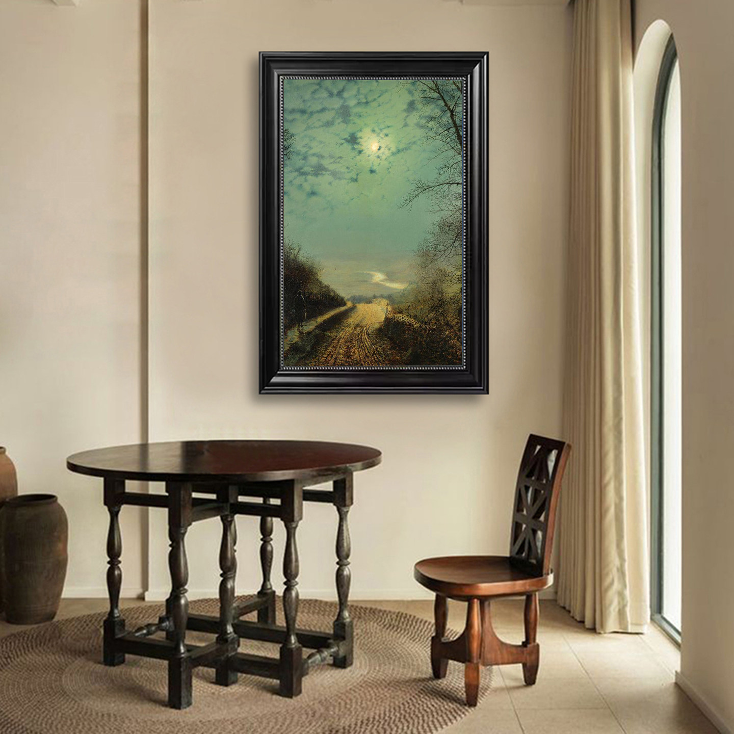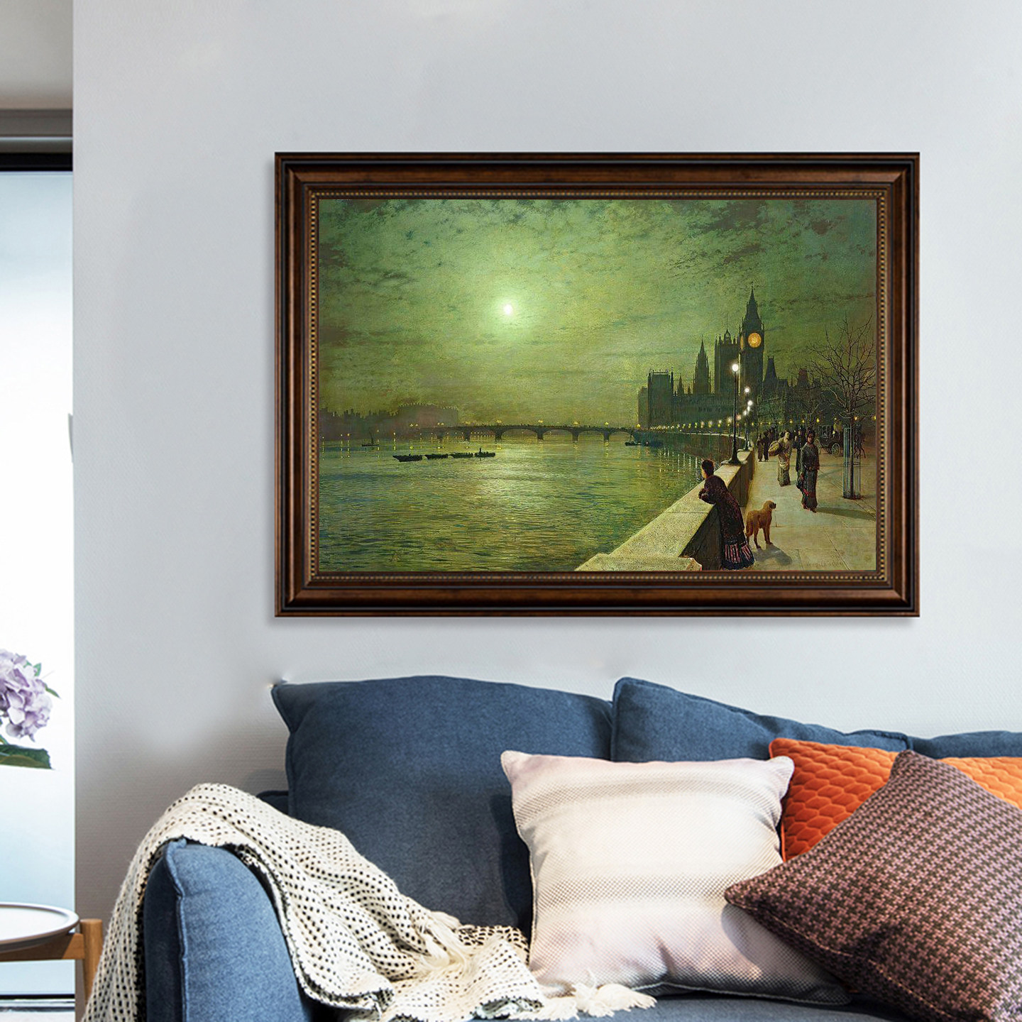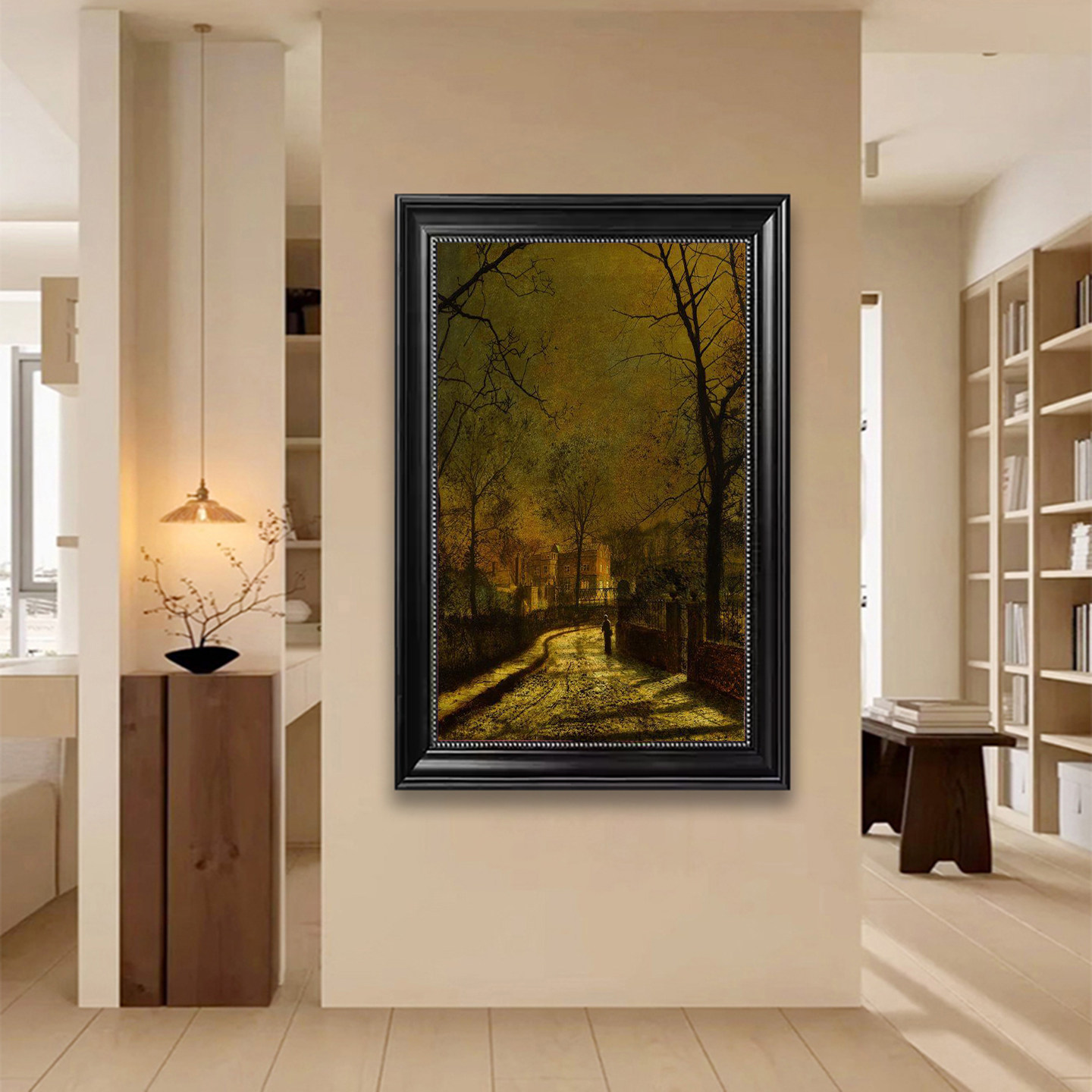 📚 格里姆肖油画复古黄昏月亮夜景唯美风景画客厅挂画月光下英国壁画