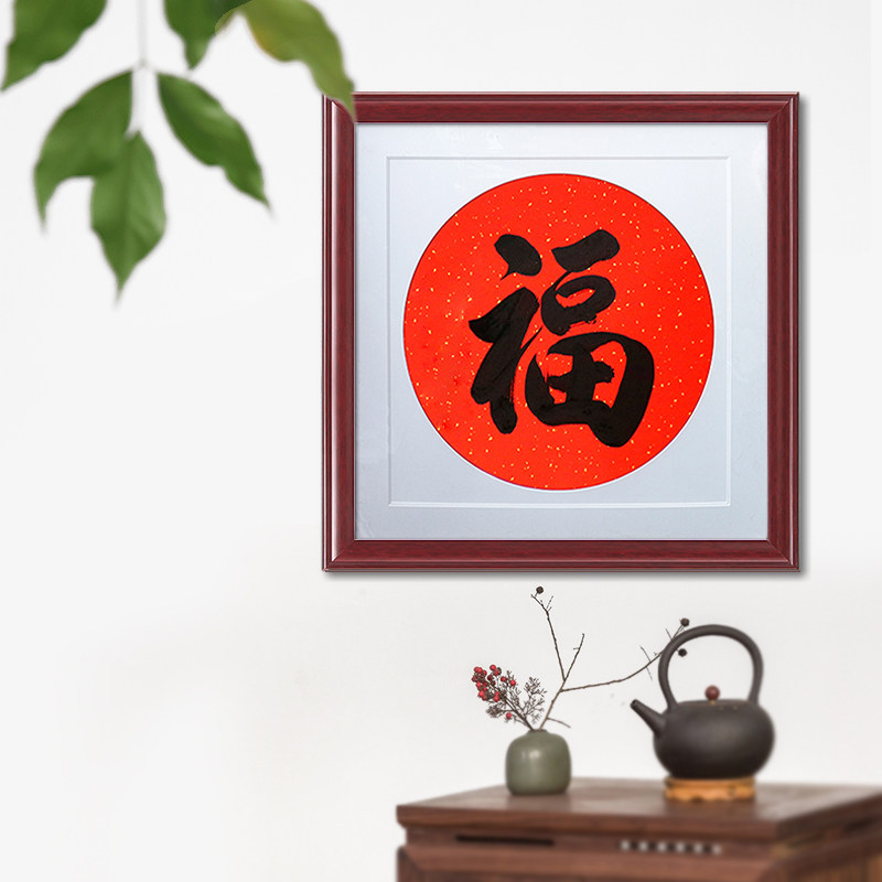 📚 正方形画框裱画框工笔字画圆形扇型卡纸装裱35 40 50中式相框定做
