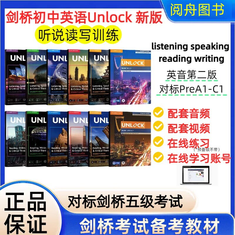 📚 原版进口剑桥初中英语教材第二版新版Unlock教材Basic12345级 listening speaking reading writing 听力口语阅读写作剑桥少儿英语
