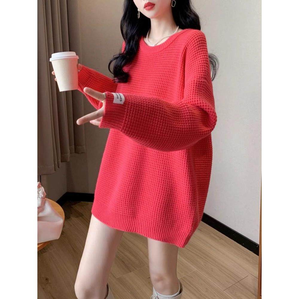 📚 橘红色圆领毛衣女春秋2025新款韩版洋气外穿宽松上衣慵懒风针织衫