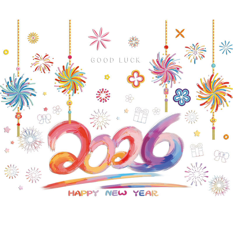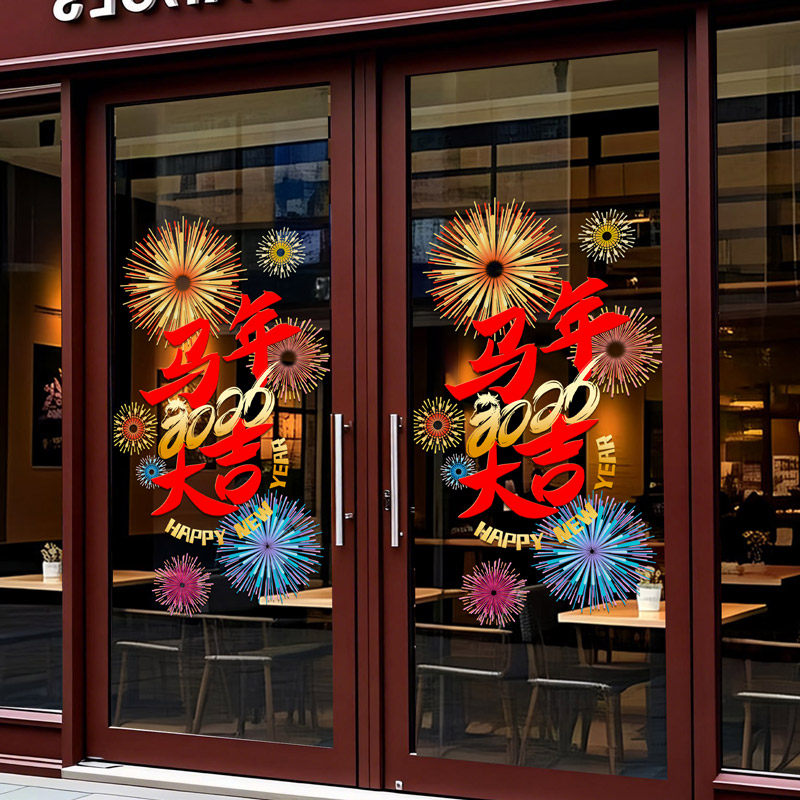 📚 新年快乐烟花装饰橱窗布置马年春节静电贴窗花2026过年玻璃门贴纸