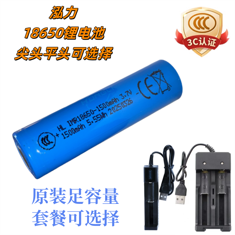 📚 泓力18650锂电池3.7V足容量可充电强光手电筒电推子头灯充电宝4.2