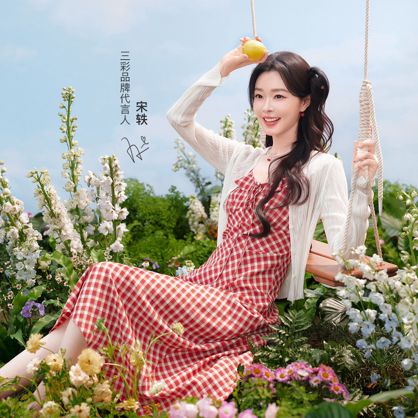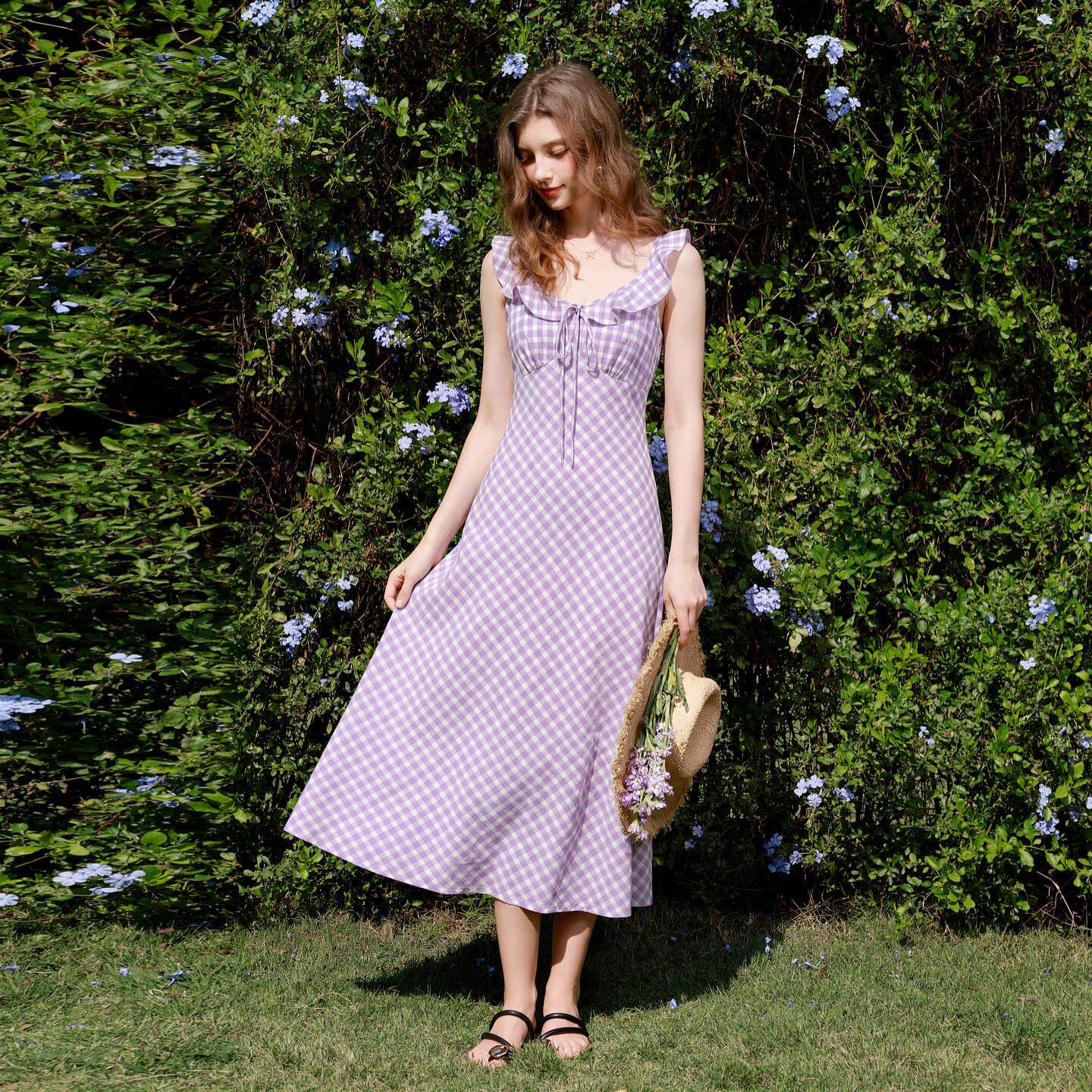 📚 【三彩宋轶同款】2026春季新款格纹吊带裙荷叶边格子A字连衣裙女M