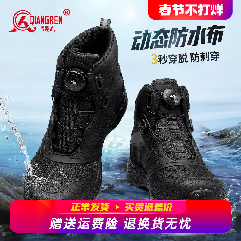 📚 强人3515男鞋中帮训练鞋秋冬高帮户外靴子战术靴男冬季黑色登山鞋