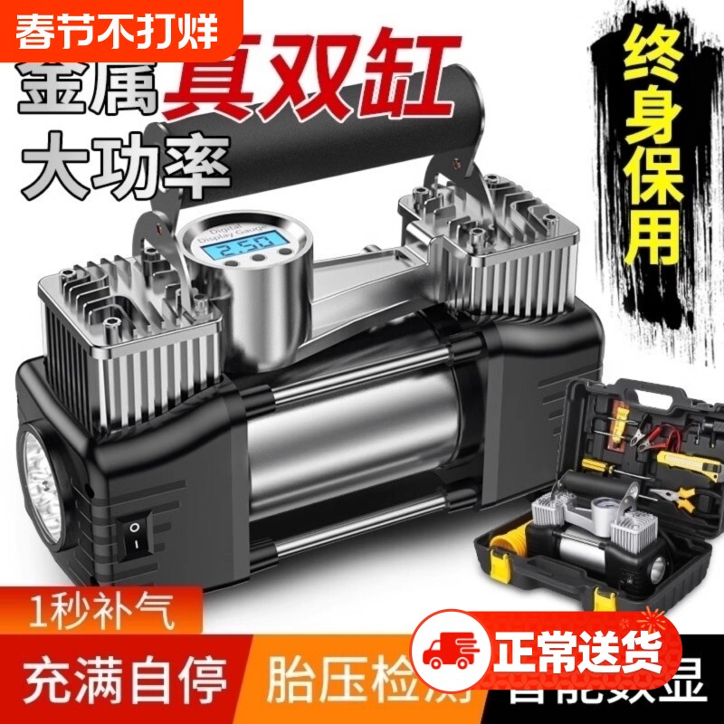 🔥超值!车载充气泵带测胎压双缸高压汽车专用便携式大功率电动轮胎打气泵,券后价仅需57.8!💥