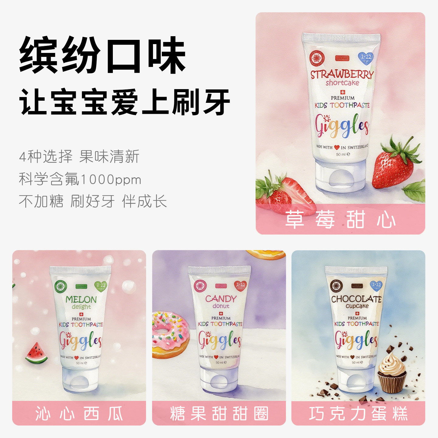 📚 瑞士Giggles儿童含氟牙膏宝宝3一6到12岁婴幼儿勿吞咽可防蛀龋齿