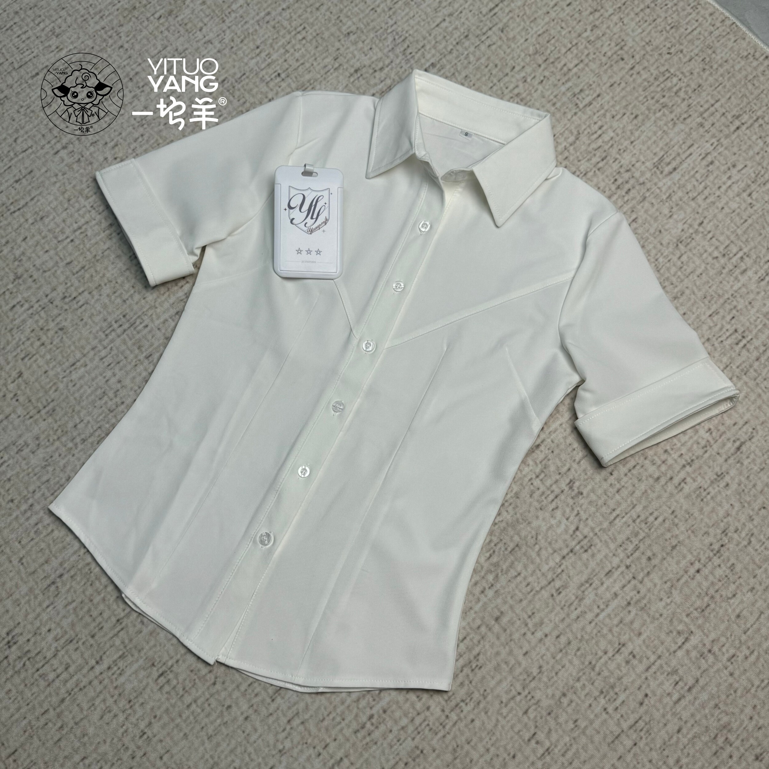 📚 一坨羊原创jk制服弹力收腰衬衫女日系学院风不透衬衣掐腰修身上衣