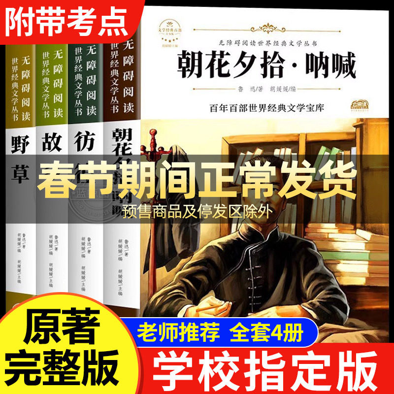 📚 朝花夕拾呐喊故乡野草彷徨鲁迅原著正版全套4册六七年级必读课外书鲁迅的书6年级初中课外阅读老师推荐散文作品集书籍经典全集读本