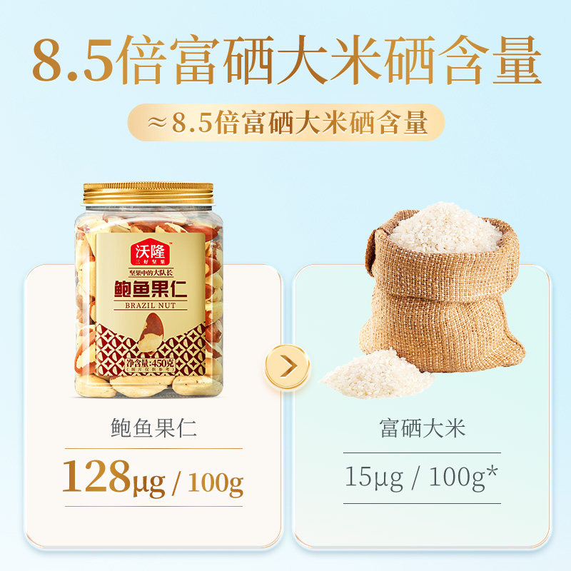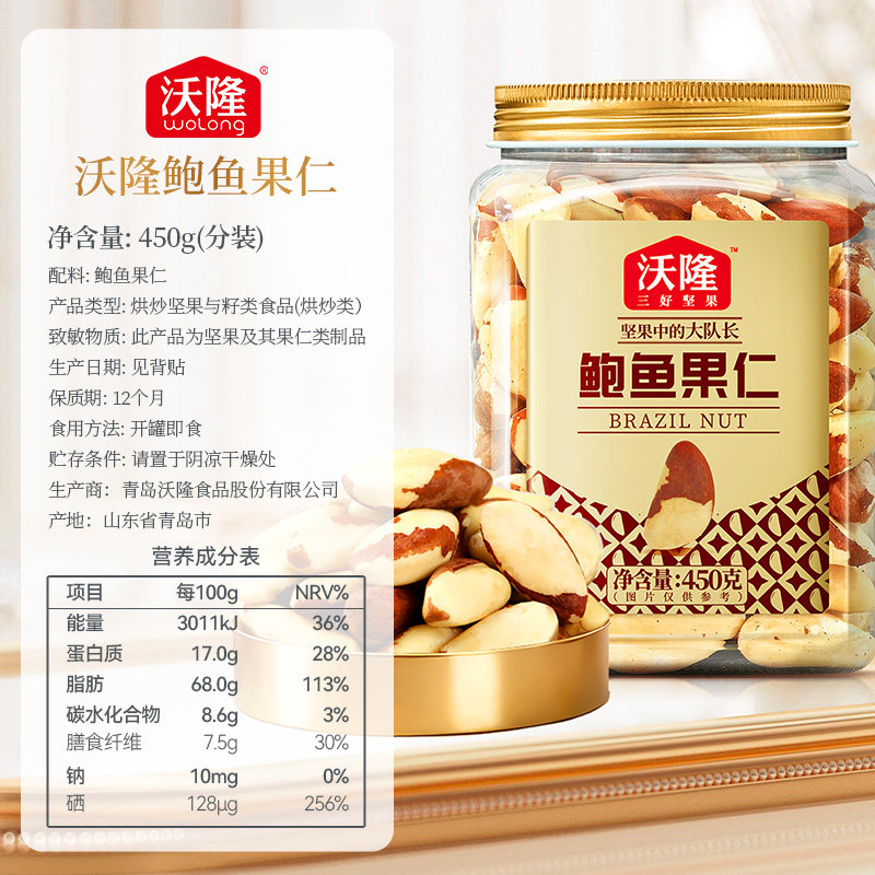 📚 沃隆鲍鱼果仁450gA级大果罐装进口纯坚果富硒蛋白质孕妇健康零食