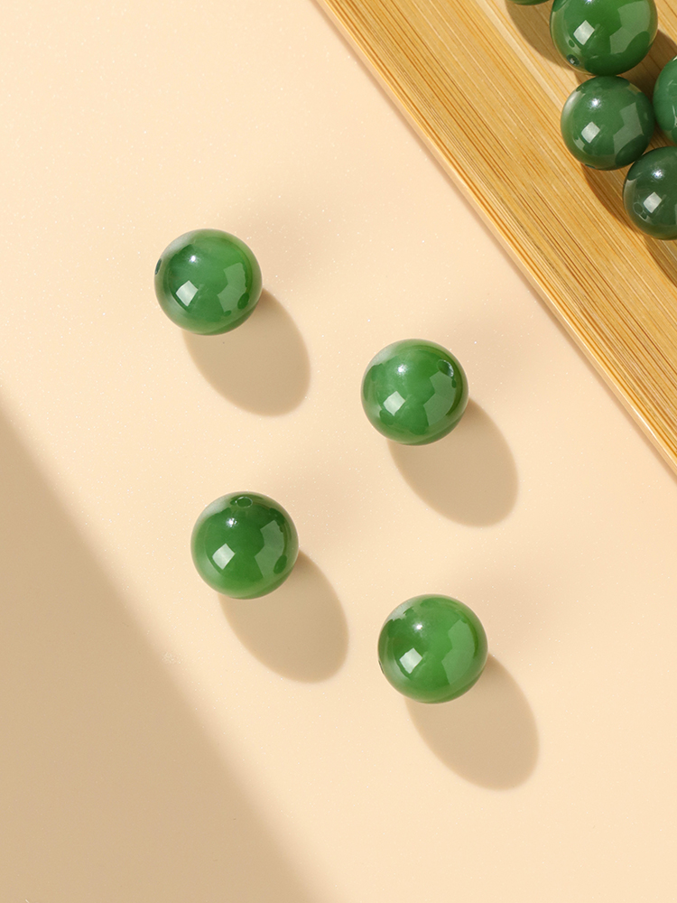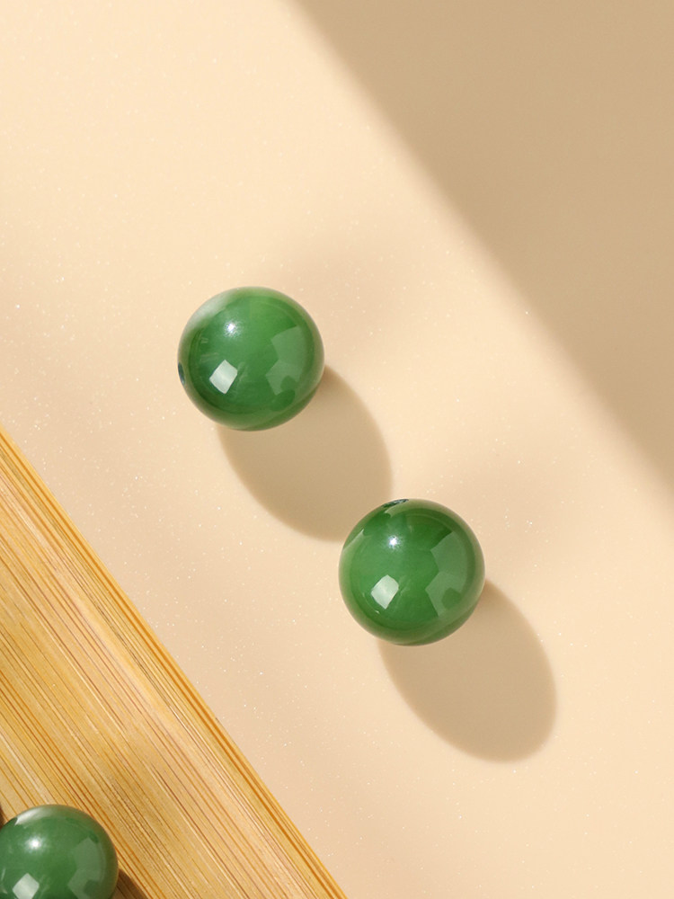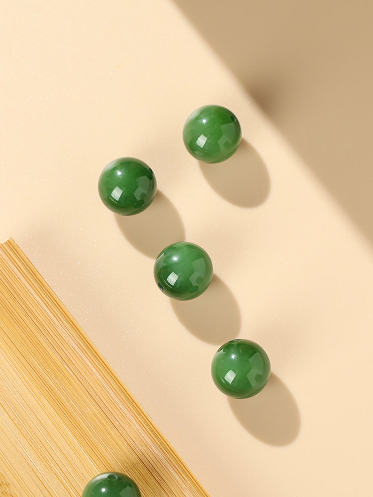 📚 天然和田玉单珠单颗新疆玉珠子手串配珠串珠圆珠绿碧玉散珠装饰