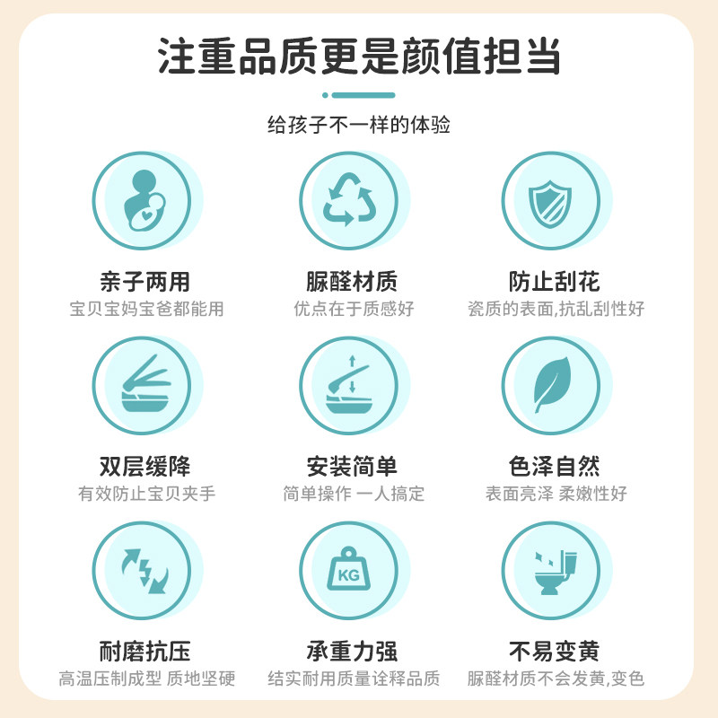 🎉首先,这款马桶盖板的设计超级人性化,无论是儿童还是成人都可以使用。它的材质是优质的脲醛,坚固耐用,使用起来非常放心。而且,它双层的缓冲设计,让使用起来更加舒适,不会有任何意外摔倒的风险。👏