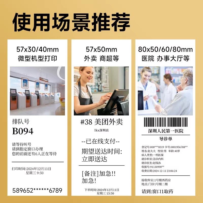 📚 力科信打印纸热敏57x50喵喵机打印纸80x60小票据纸80x80收银纸外卖打印单卷纸美团超市收款机收银台厨房专用