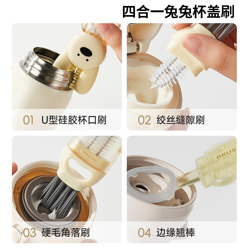 📚 四合一杯盖刷水杯刷辅食机刀片缝隙清洗专用杯口刷子清洁奶瓶神器