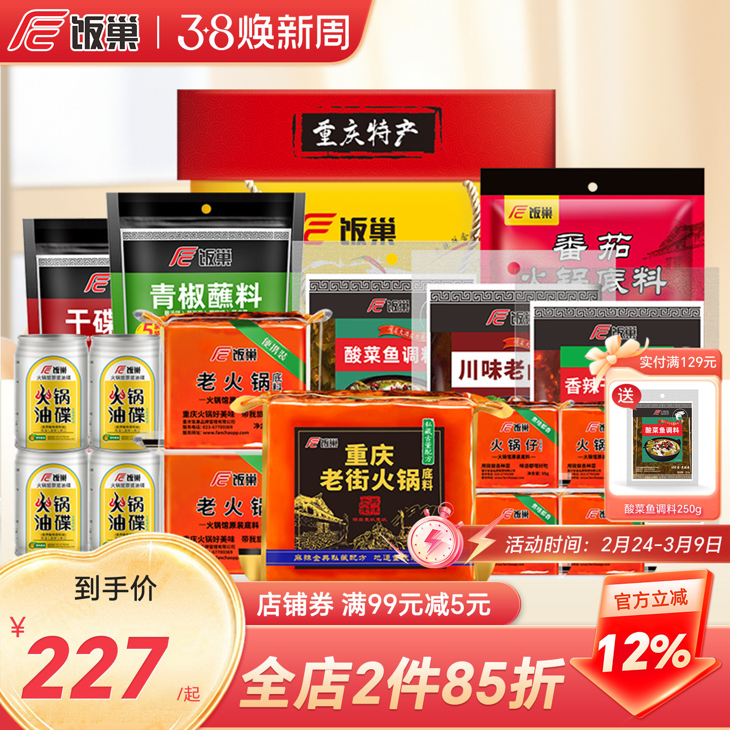 📚 【饭巢Bi吃榜】火锅底料川菜调料油碟蘸料套餐过节送礼组合2670g