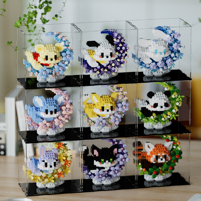 📚 潮乐创花前月下萌宠积木微小颗粒拼装玩具摆件手办礼儿童益智礼物