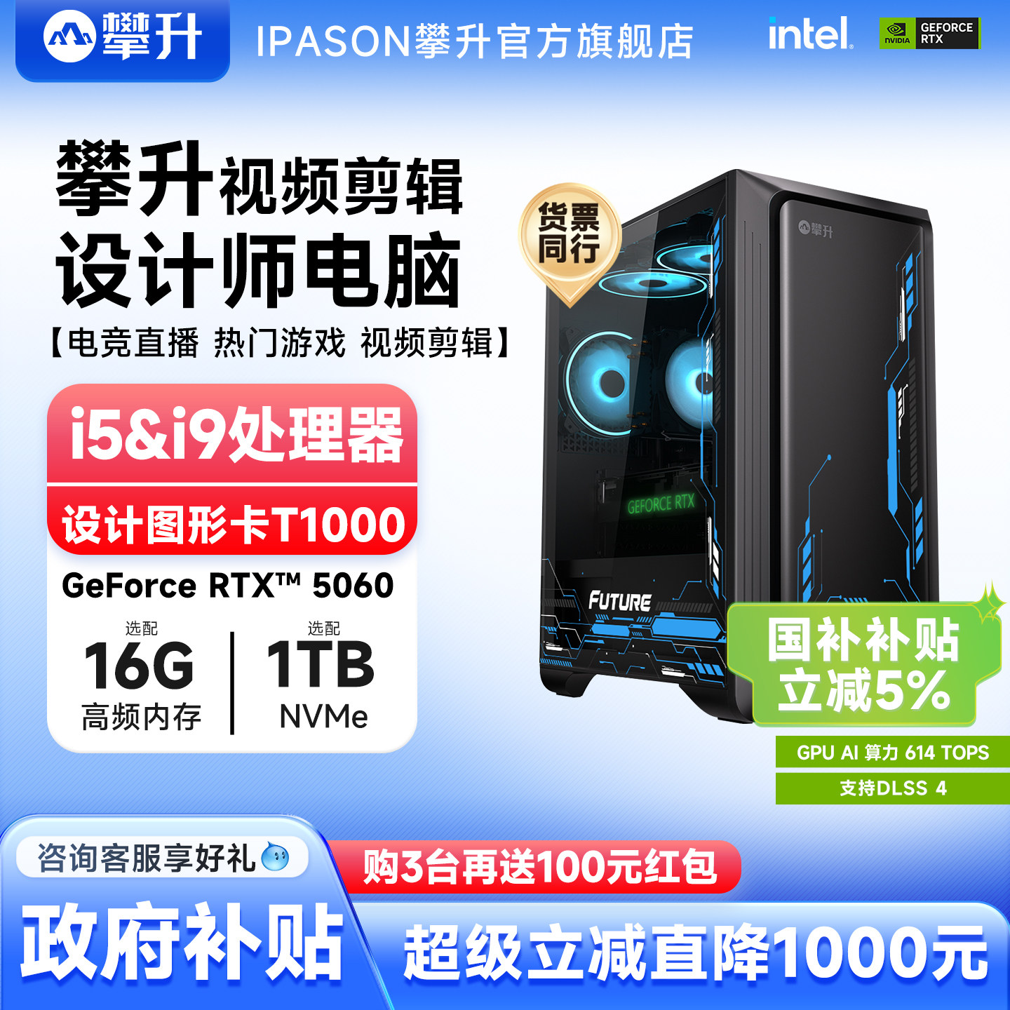 📚 【政府补贴5%】攀升设计师办公电脑主机i5/i9/T1000/RTX5060/T400视频剪辑渲染美工建筑办公DIY台式电脑整机