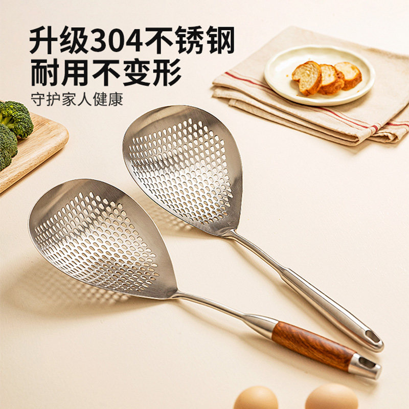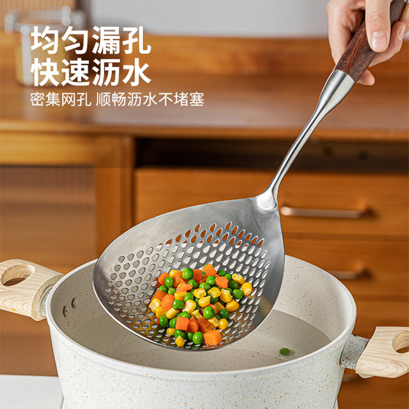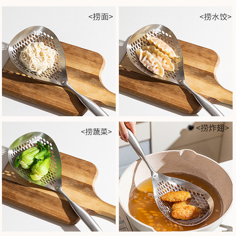 📚 漏勺家用厨房笊篱304不锈钢捞勺食品级油炸捞面捞饺子大漏勺特大