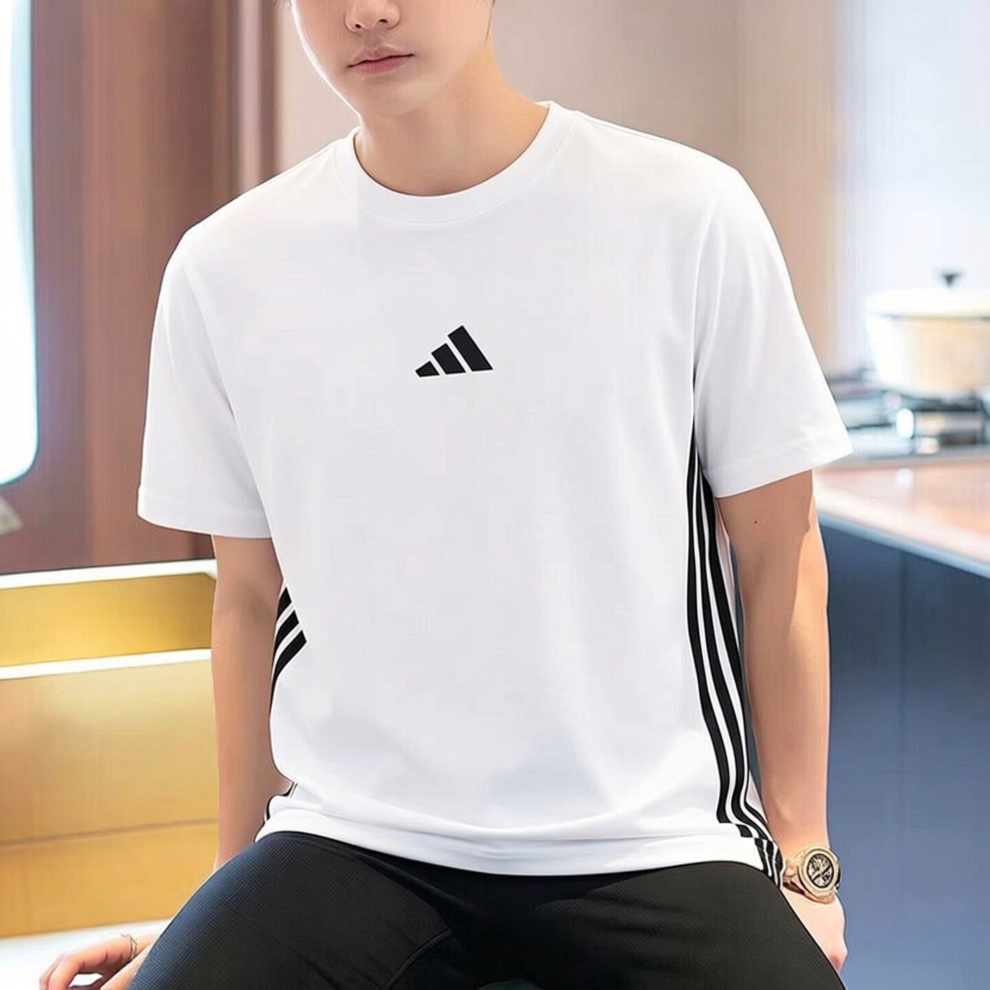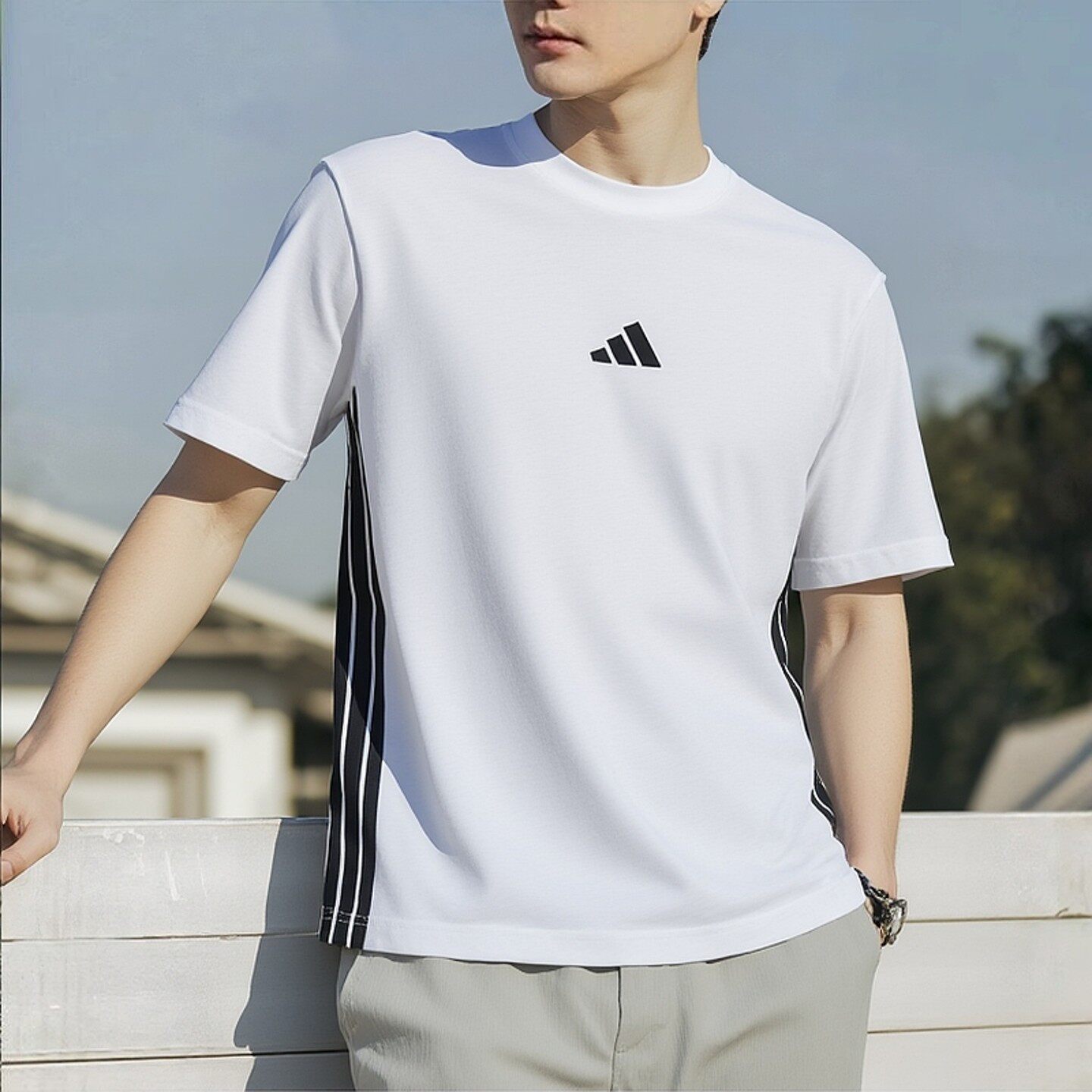 📚 阿迪达斯纯棉短袖男装春夏新款透气运动半袖男士三条纹T恤JY8563