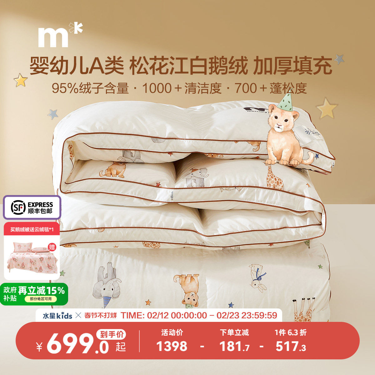 #水星儿童 #95白鹅绒冬被子 #抑菌防螨 #加厚羽绒被 #可水洗 #券后价1998