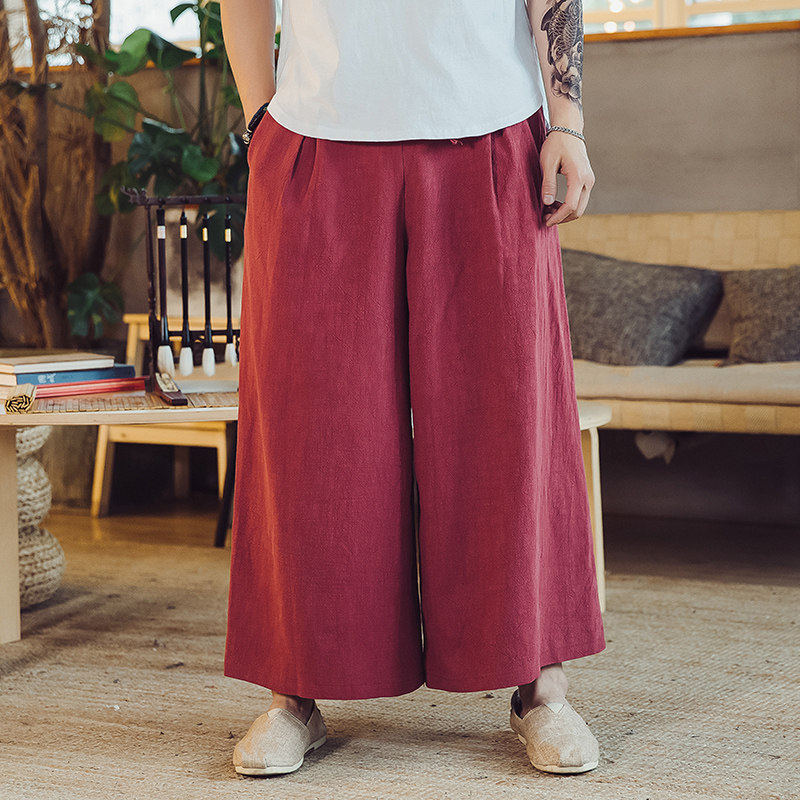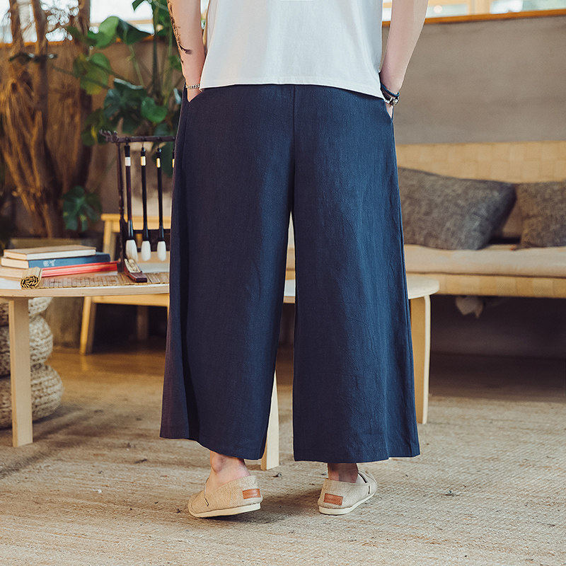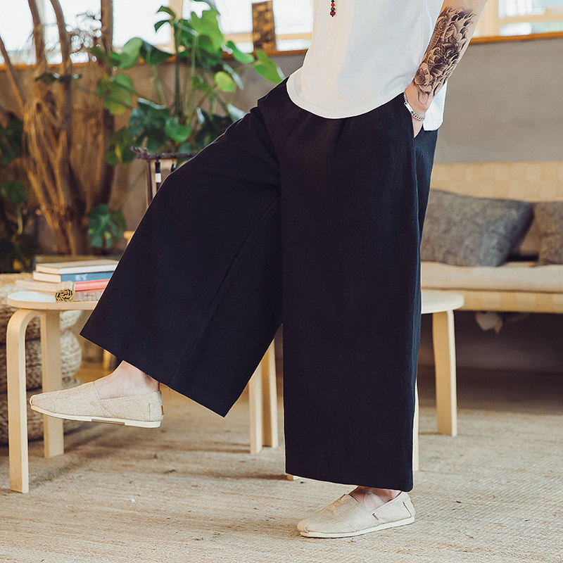 📚 秋季中式禅意休闲裤宽松直筒阔腿裤麻料男士裙裤老粗布禅修长裤子