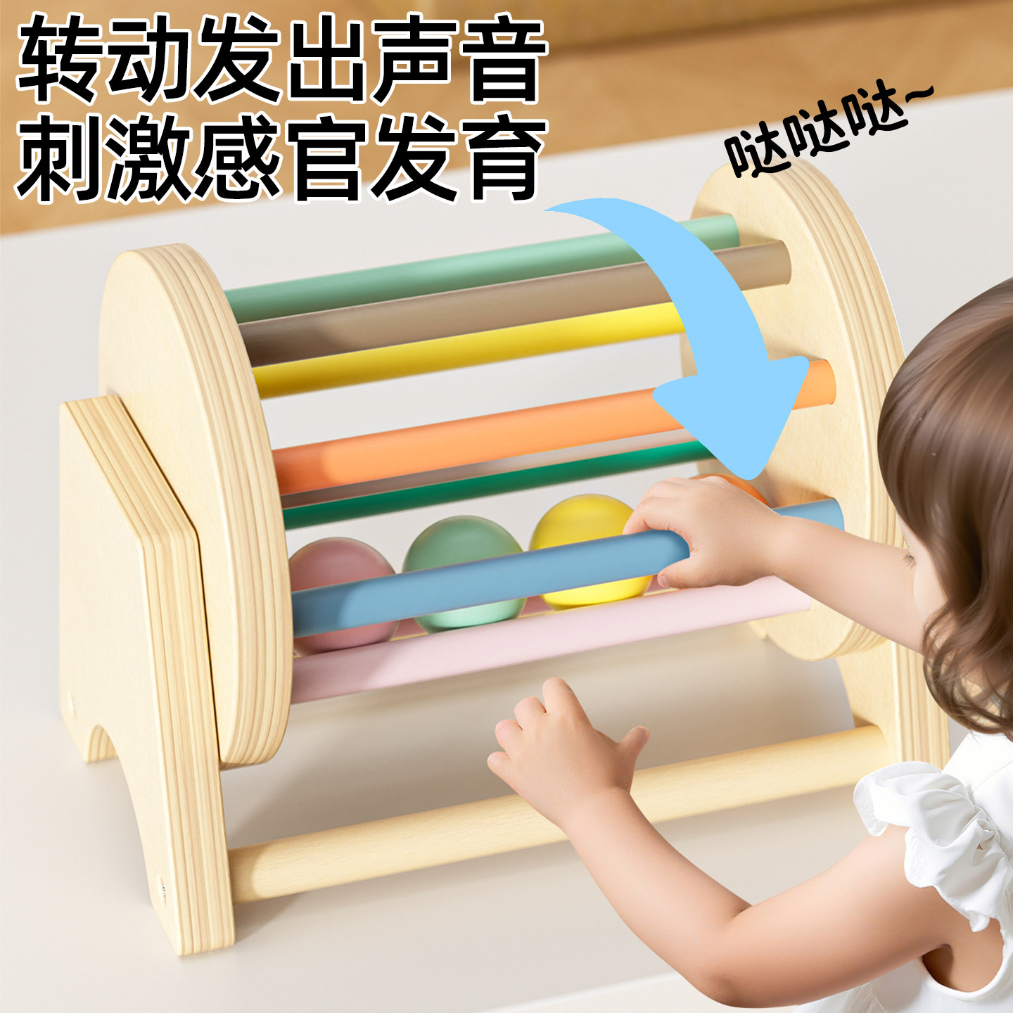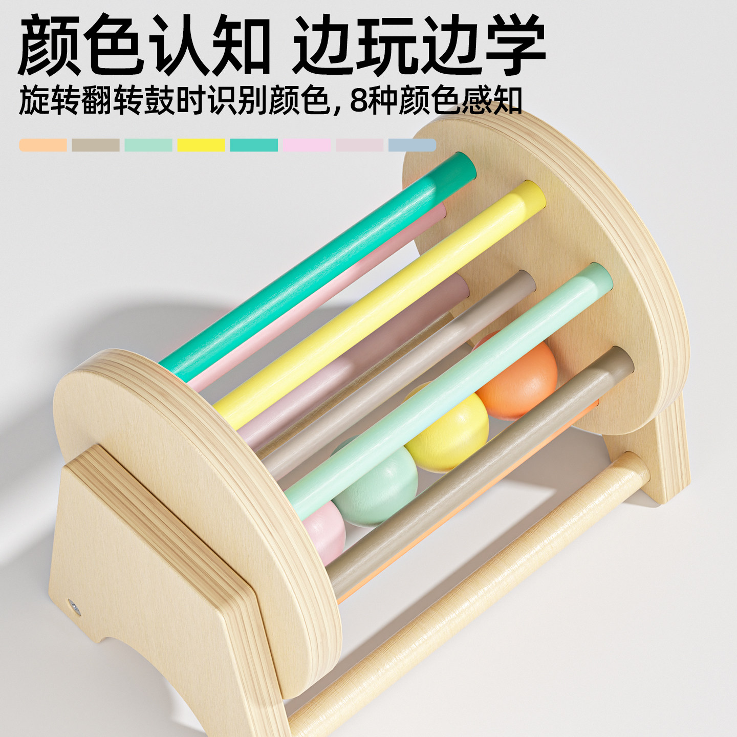 📚 蒙氏教具滚动鼓木制彩虹纺织鼓婴儿益智蒙特梭利宝宝早教盒子玩具