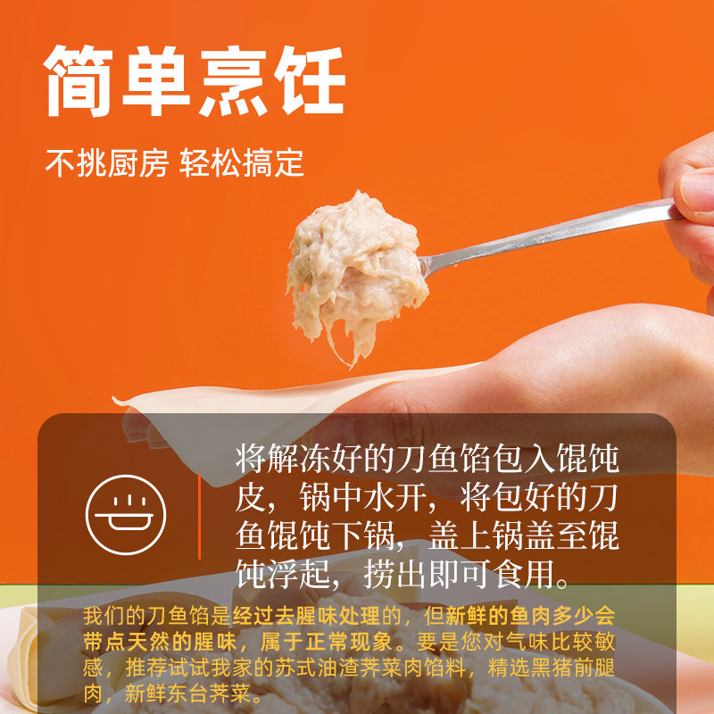 📚 鹿有有老江阴刀鱼馄饨馅料手工原味商用速食早餐家用云吞鱼肉馅料