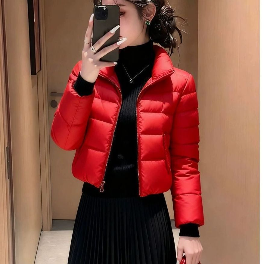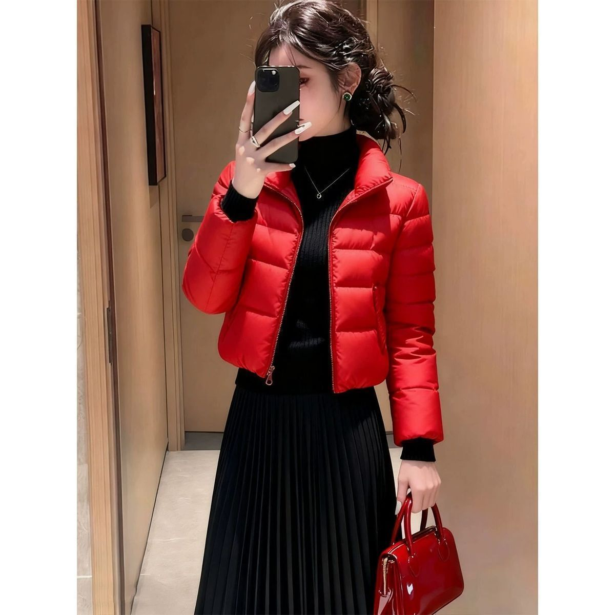 📚 2025冬季新款红色短款羽绒棉服女立领显瘦保暖修身小个子时尚棉衣