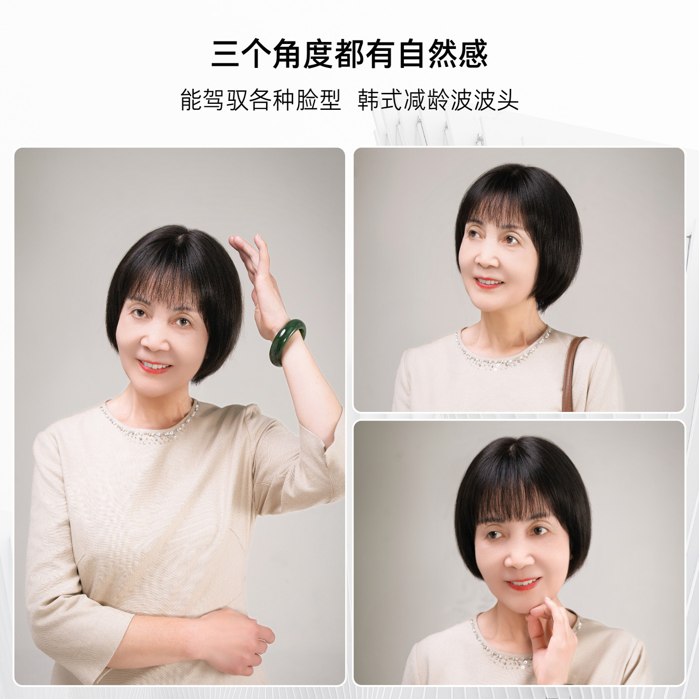 📚 假发全头套女真发减龄波波头自然短发中老年妈妈款光头黑色假发套