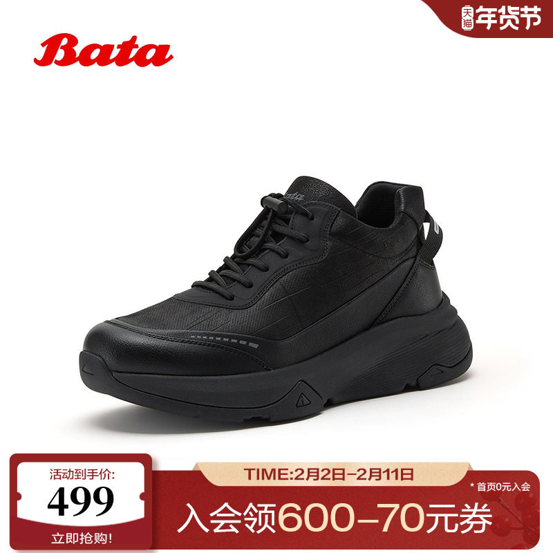 📚 Bata休闲鞋男2025冬季商场新款牛皮厚底加绒休闲运动鞋25166DM5