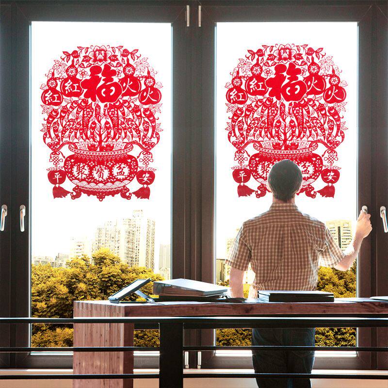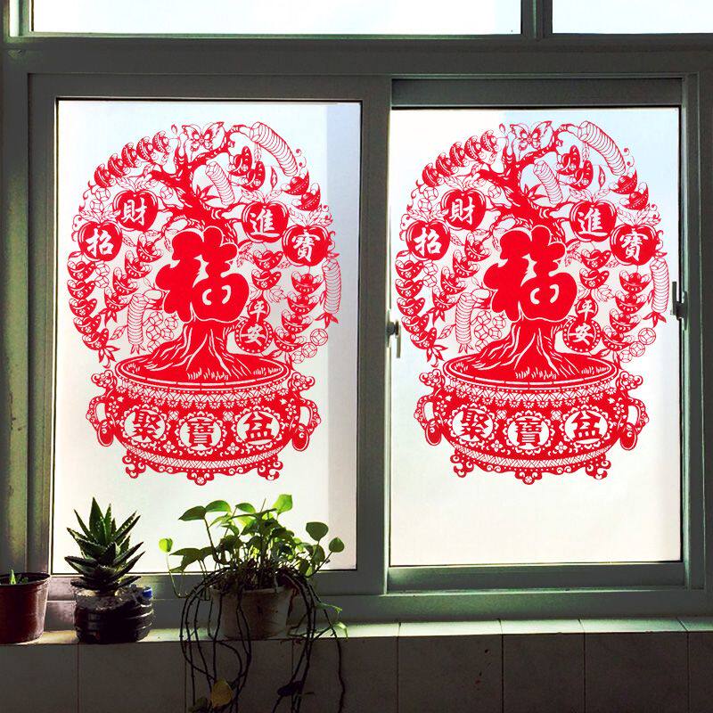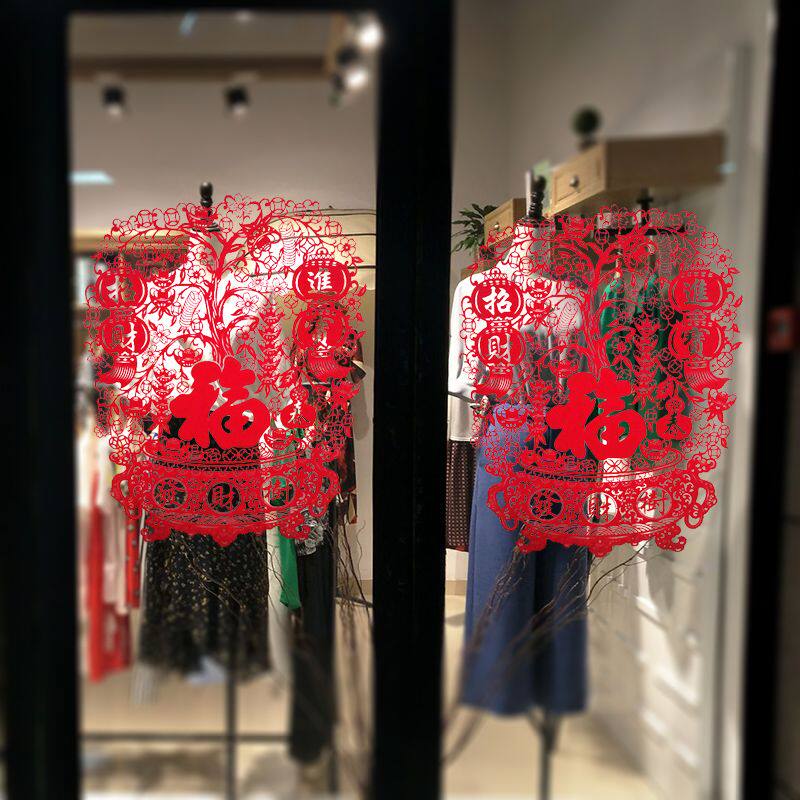 📚 绒布窗花静电贴新年装饰品卧室店铺玻璃门贴春节福字窗贴墙贴年画