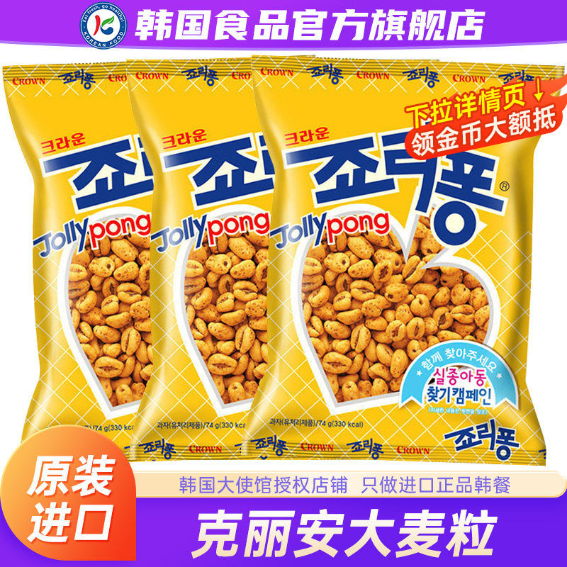 📚 韩国进口crown克丽安大麦粒爆米花休闲办公室儿童零食老式怀旧