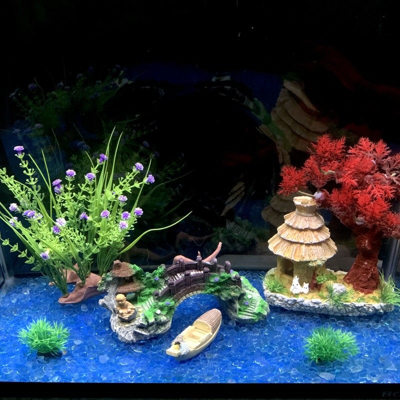 📚 热卖仿真小桥园林树脂鱼缸水族箱假山石水草鱼缸造景装饰大桥摆件