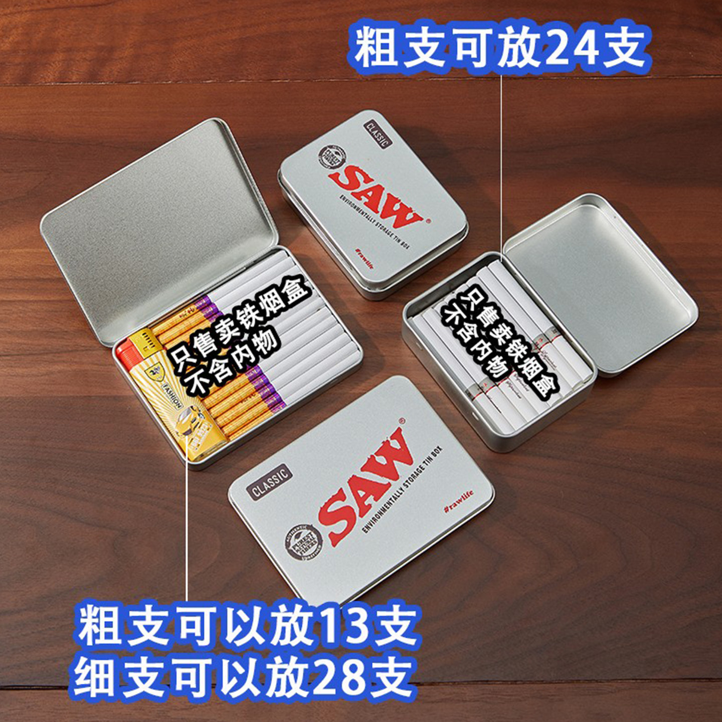 📚 SAW烟盒装粗烟13/20支便携男士随身带个性包转铁质翻盖高级收纳盒