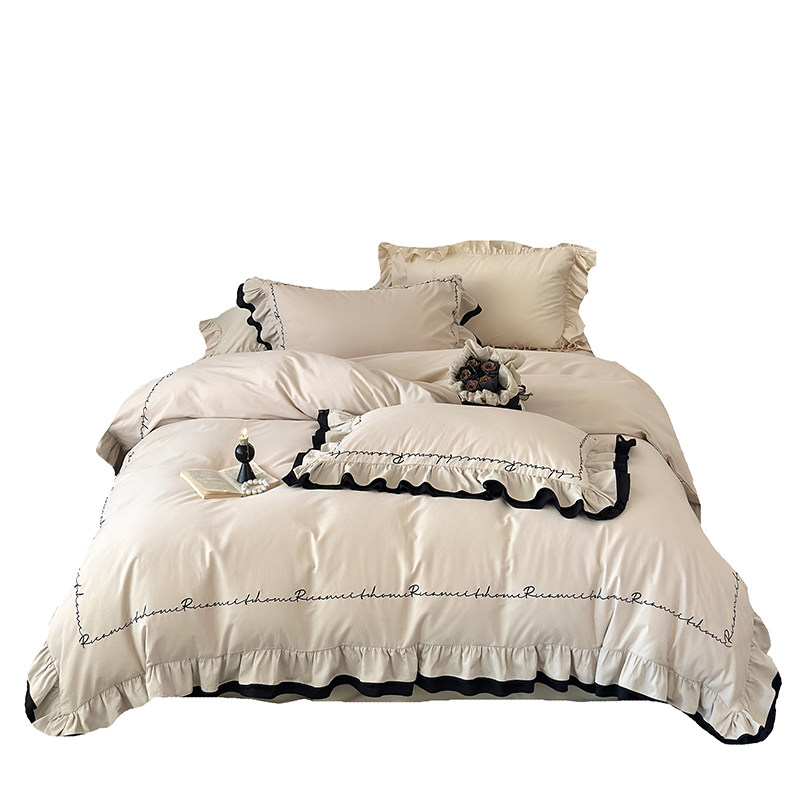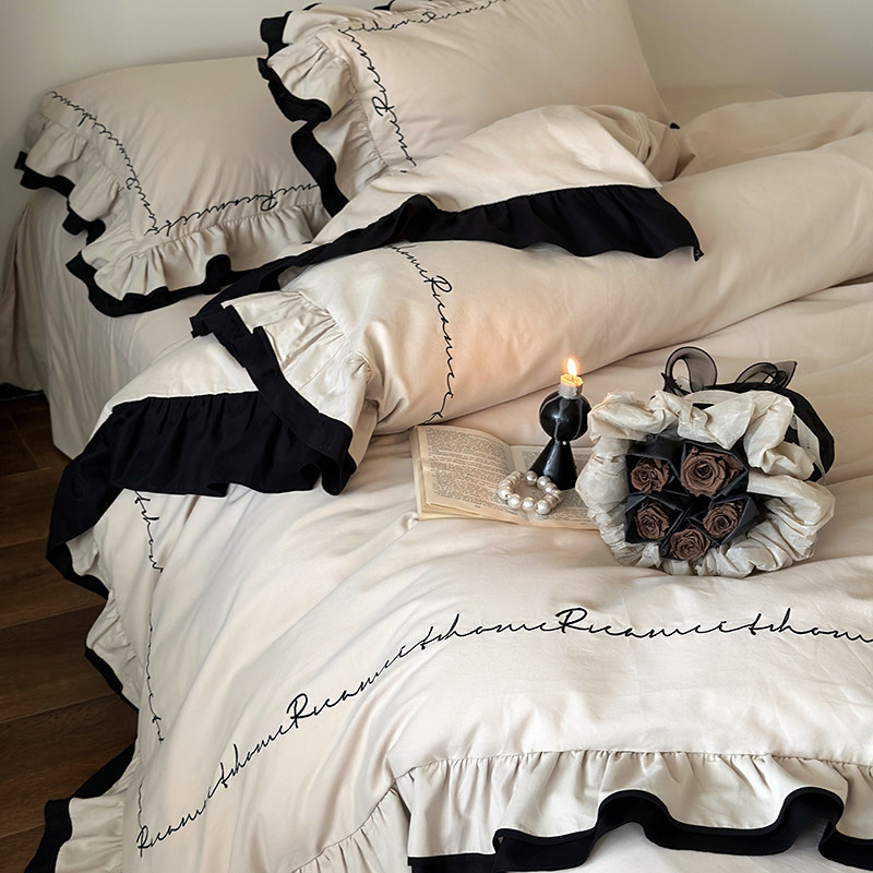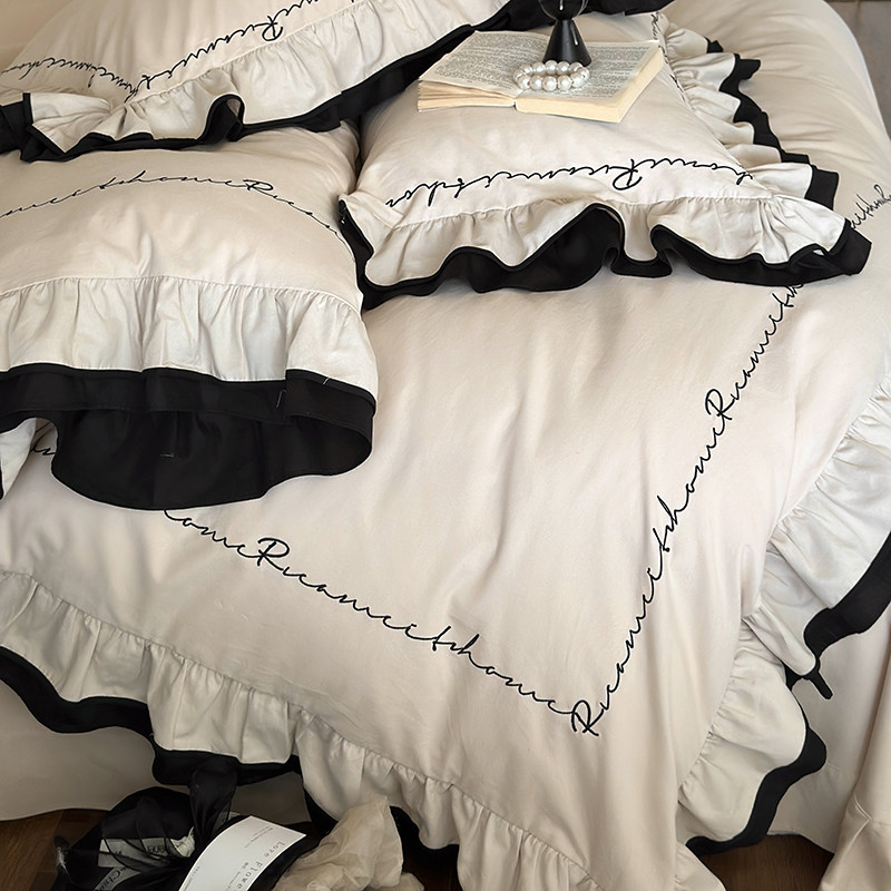 📚 法式复古全棉磨毛床上四件套公主风纯棉浪漫花边刺绣被套少女床单